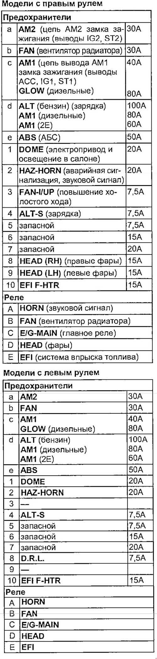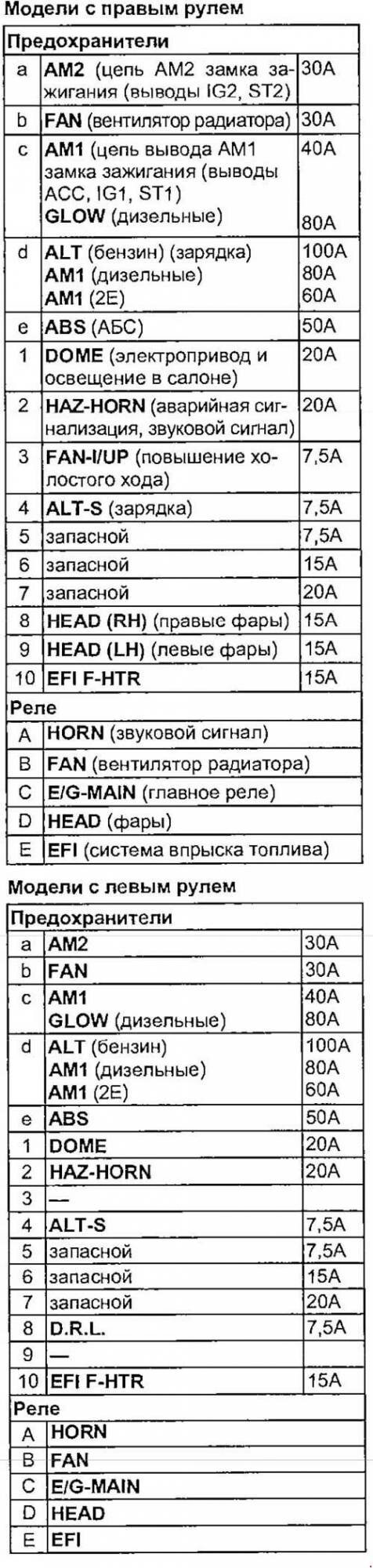 Предохранители Toyota Estima, Estima Lucida 1990-1999