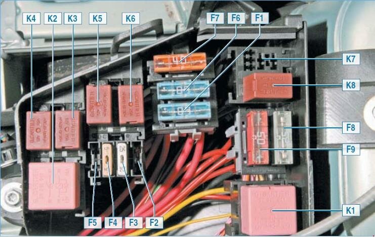 Монтажный блок реле и предохранителей в моторном отсеке