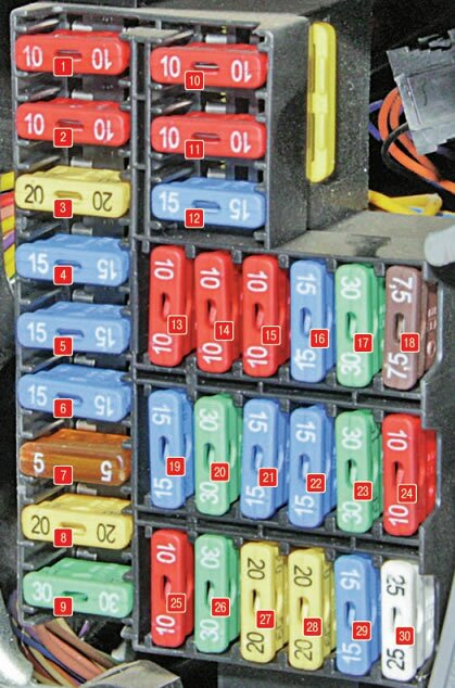 Монтажный блок предохранителей в салоне