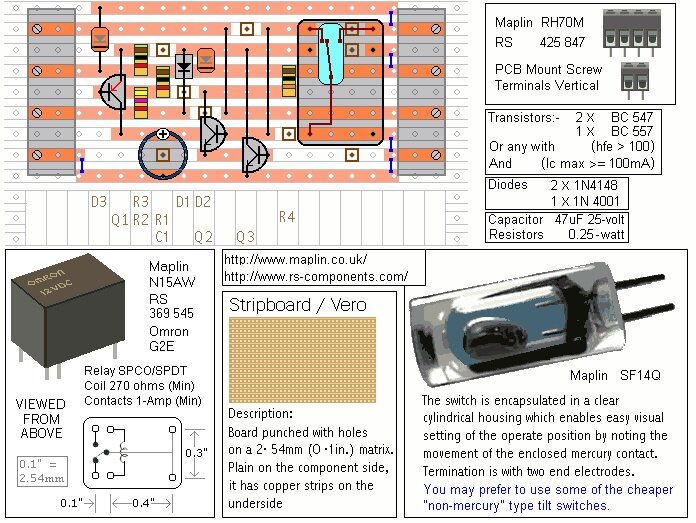 В режиме ожидания схема практически не тянет тока. Это позволяет реализовать питание от дополнительных встроенных батарей. Таким образом девайс превращается в универсальное охранное устройство, подходящее для охраны любого объекта (авто, багаж, гараж, чемодан и т.д.). Деталей тут так мало, что не обязательно собирать полноценную печатную плату - достаточно макетной, как показано на фото. В общем рекомендуем всем такую схему, которую элементарно сделать своими руками. А если собираетесь собрать кое-что по-совершеннее - смотрите эту схему.