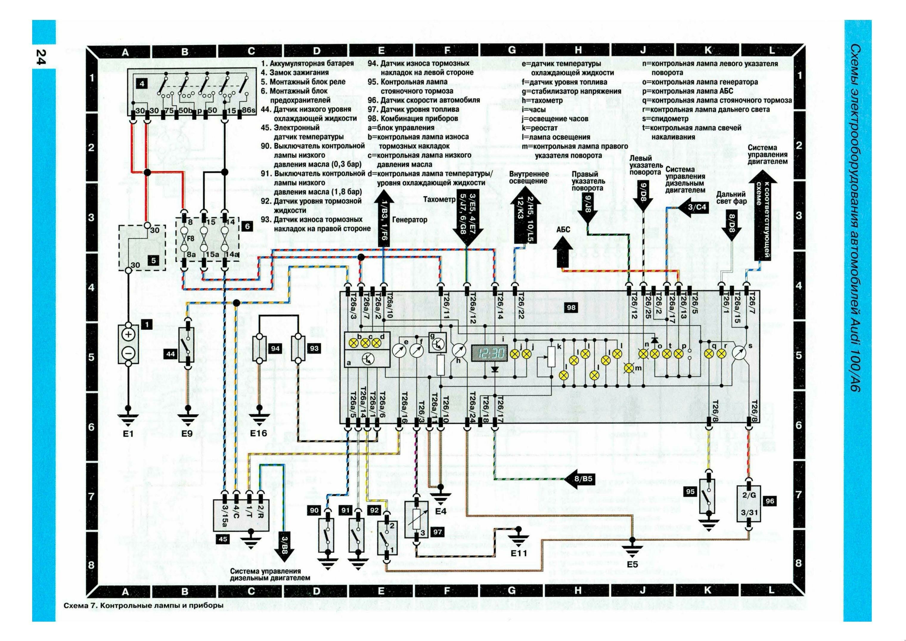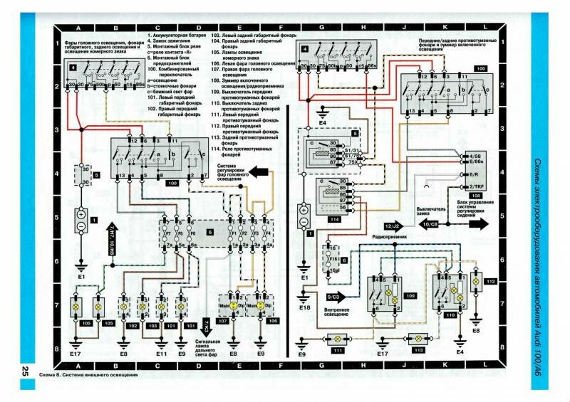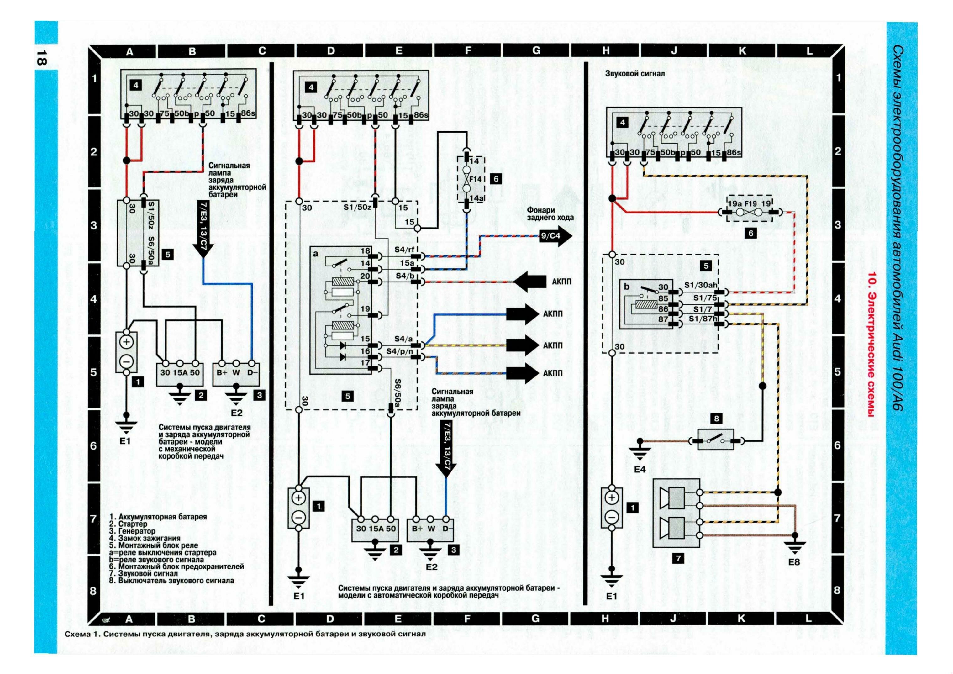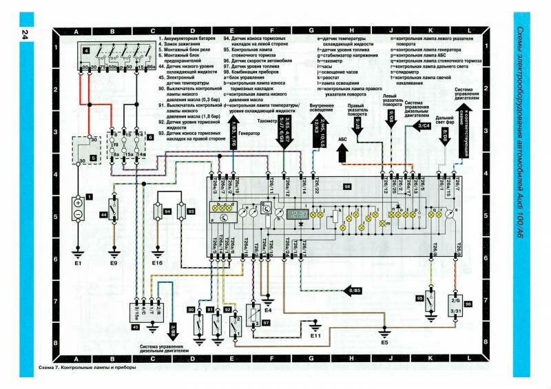 Ниже предоставленны электросхемы оборудования на AUDI 100 / А6.