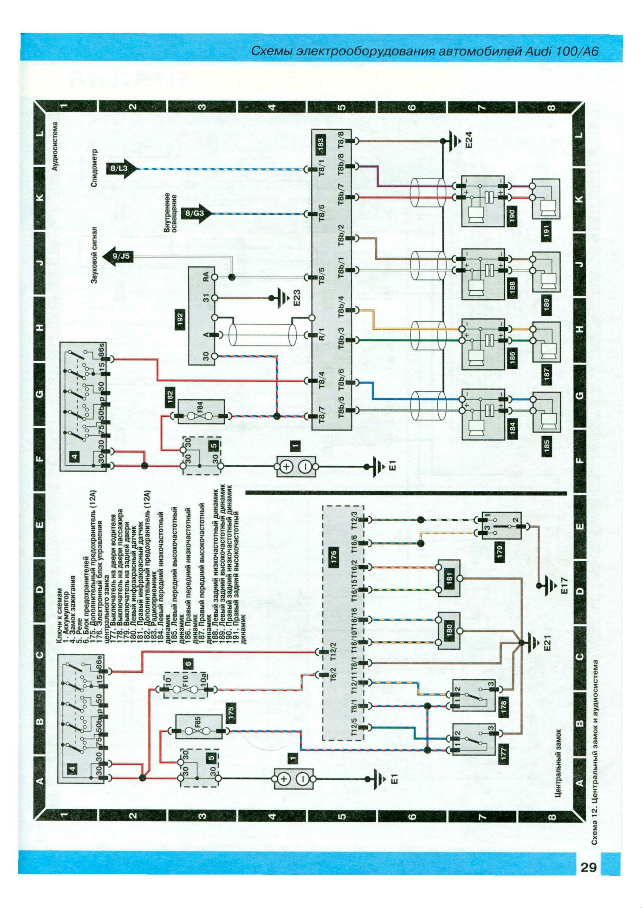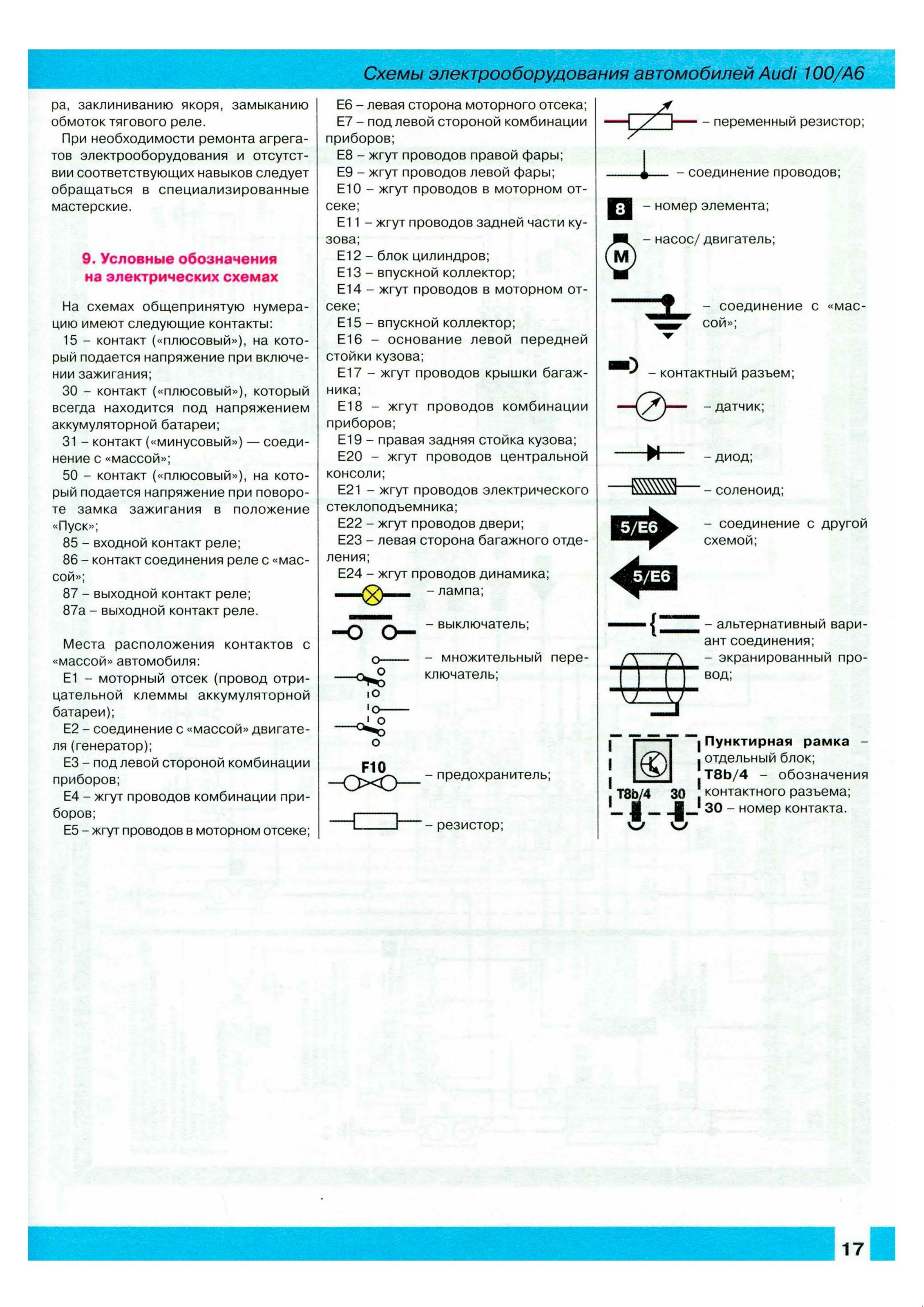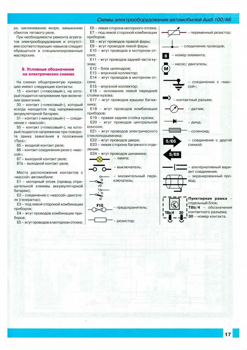 Ниже предоставленны электросхемы оборудования на AUDI 100 / А6.