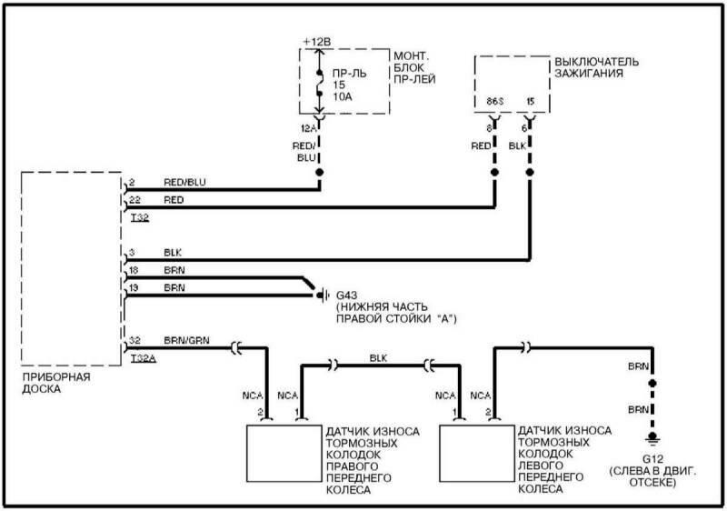 Схема сигнализатора износа тормозных колодок Audi A4