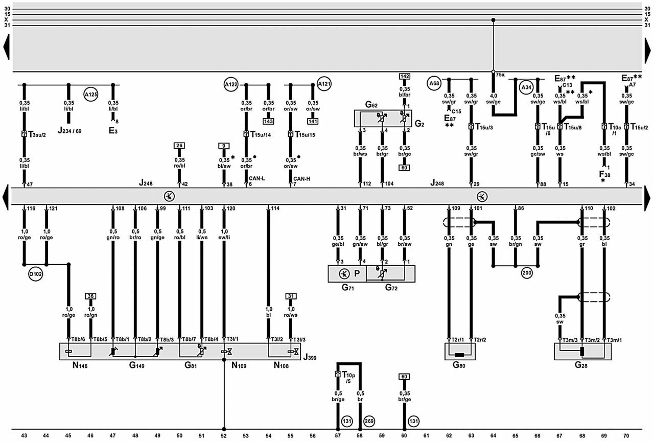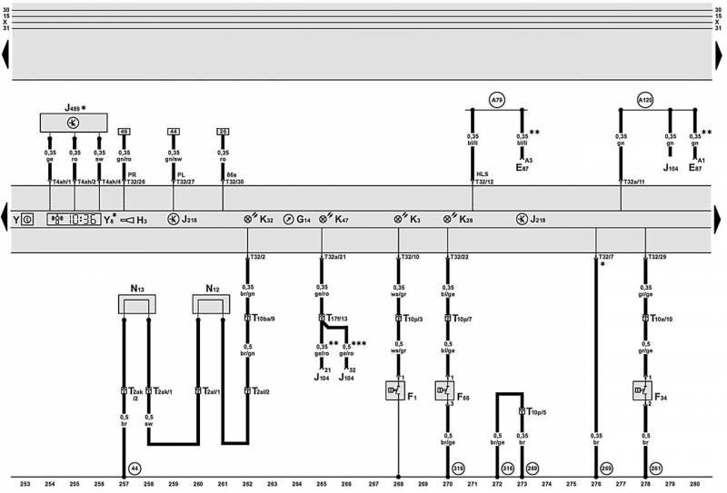 A66 – соединение (30а, ZV/ DWA/ IR) в электропроводке панели приборов