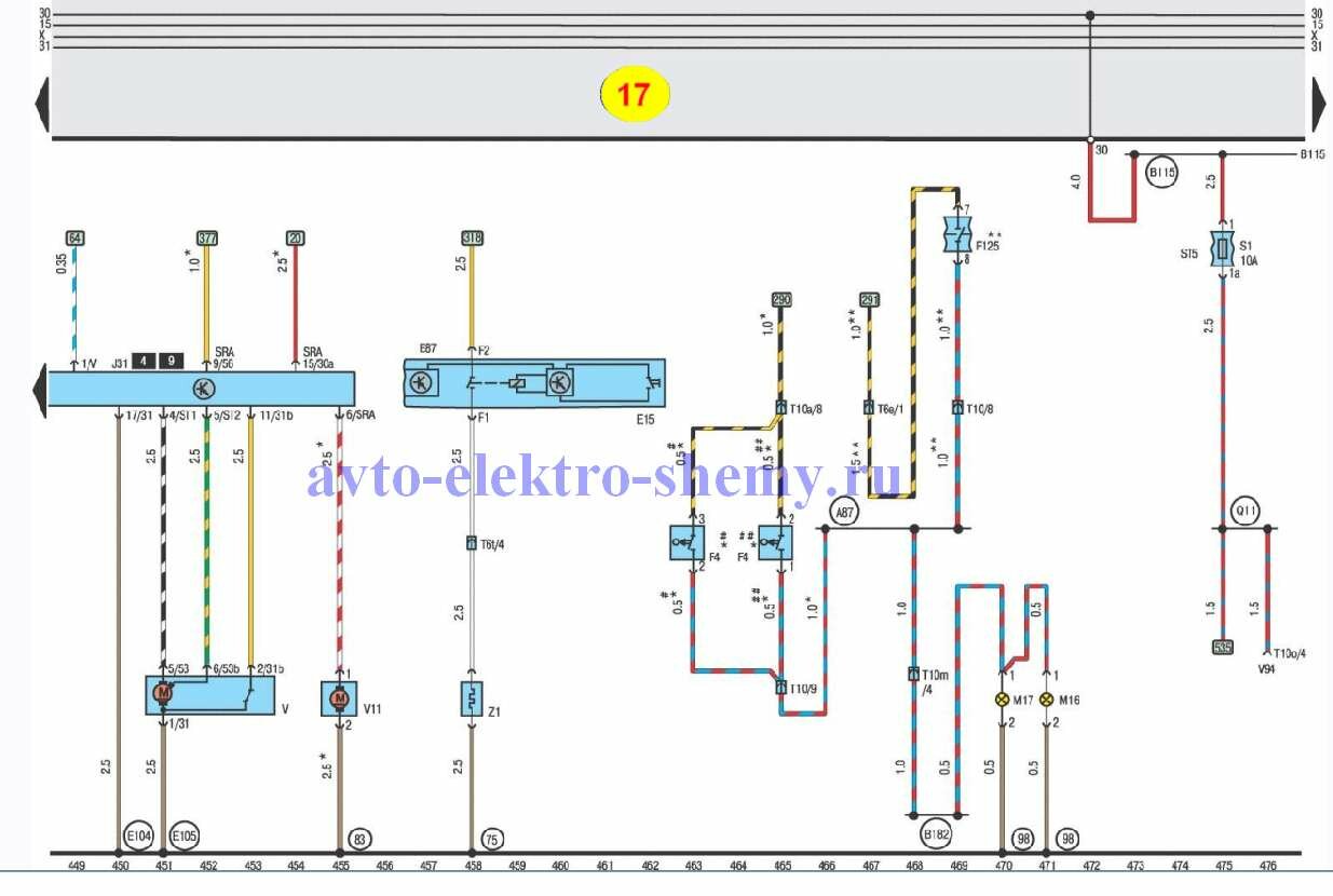 Q11 – соединение положительное (30a), в электропроводке стеклоподъемник/ система замков с центральным управлением и дверной выключатель освещения