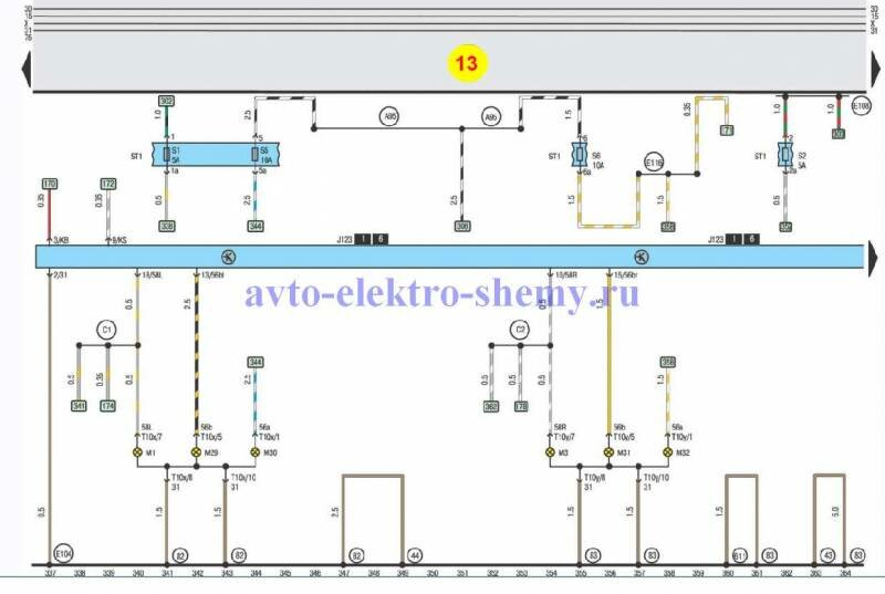 Левая и правая фары - электросхема