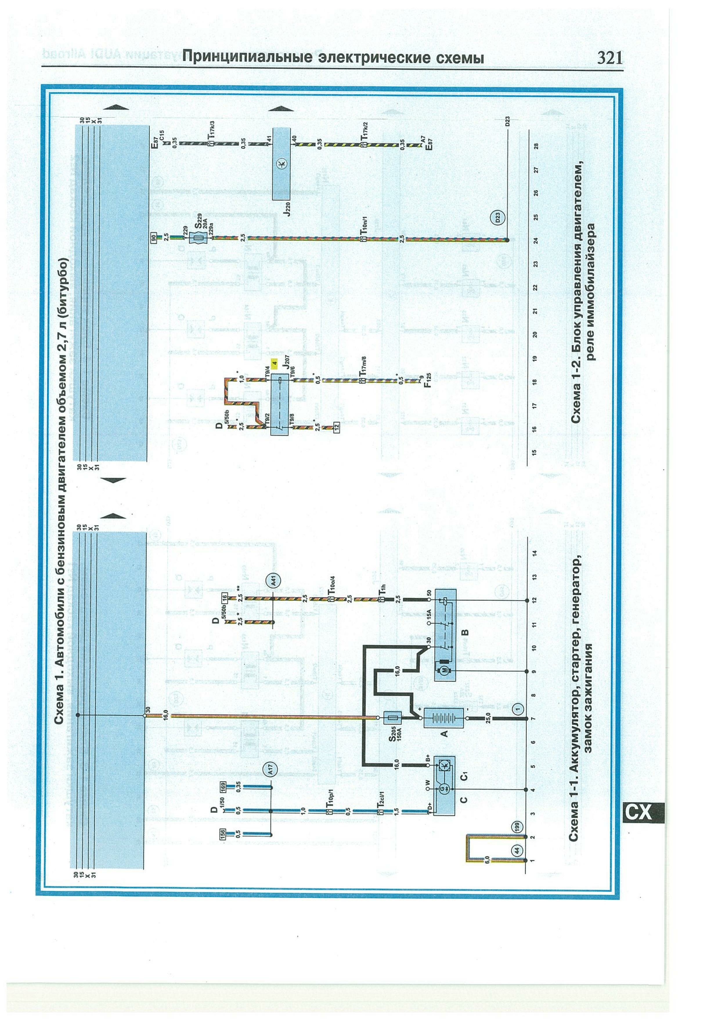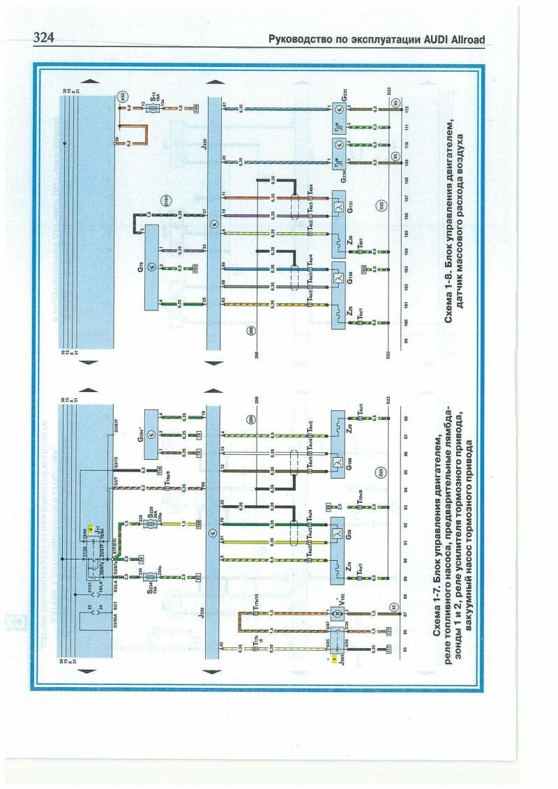 В этой статье вы найдете кучу интерестных, а главное полезных схем электрооборудования на Ауди Олроуд выпуском с 2000 года. Основой для Allroad quattro стал универсал A6 Avant quattro. При этом кузов и шасси подверглись серьезным изменениям. Allroad наделили пневматичес кой подвеской, способной менять дорожный просвет в пределах от 142 до 208 мм. Кузов опоясывает плас тиковый обвес — защита от повреждений краски на бездорожье. Трансмиссия quattro с центральным дифференциалом Torsen, в обычных условиях распределяющим момент поровну между передней и задней осями. На Audi Allroad quattro ставили V-образные турбомоторы: бензиновый 2,7 л (250 л. с.) и турбодизель объемом 2,5 л (180 л. с.). В 2002 году гамма моторов пополнилась 4,2-литровым 300-сильным V8. V6 оснащалась 6-ступенчатой «механикой» и 5-скоростным автоматом. А модификация V8 получила только автоматическую коробку.