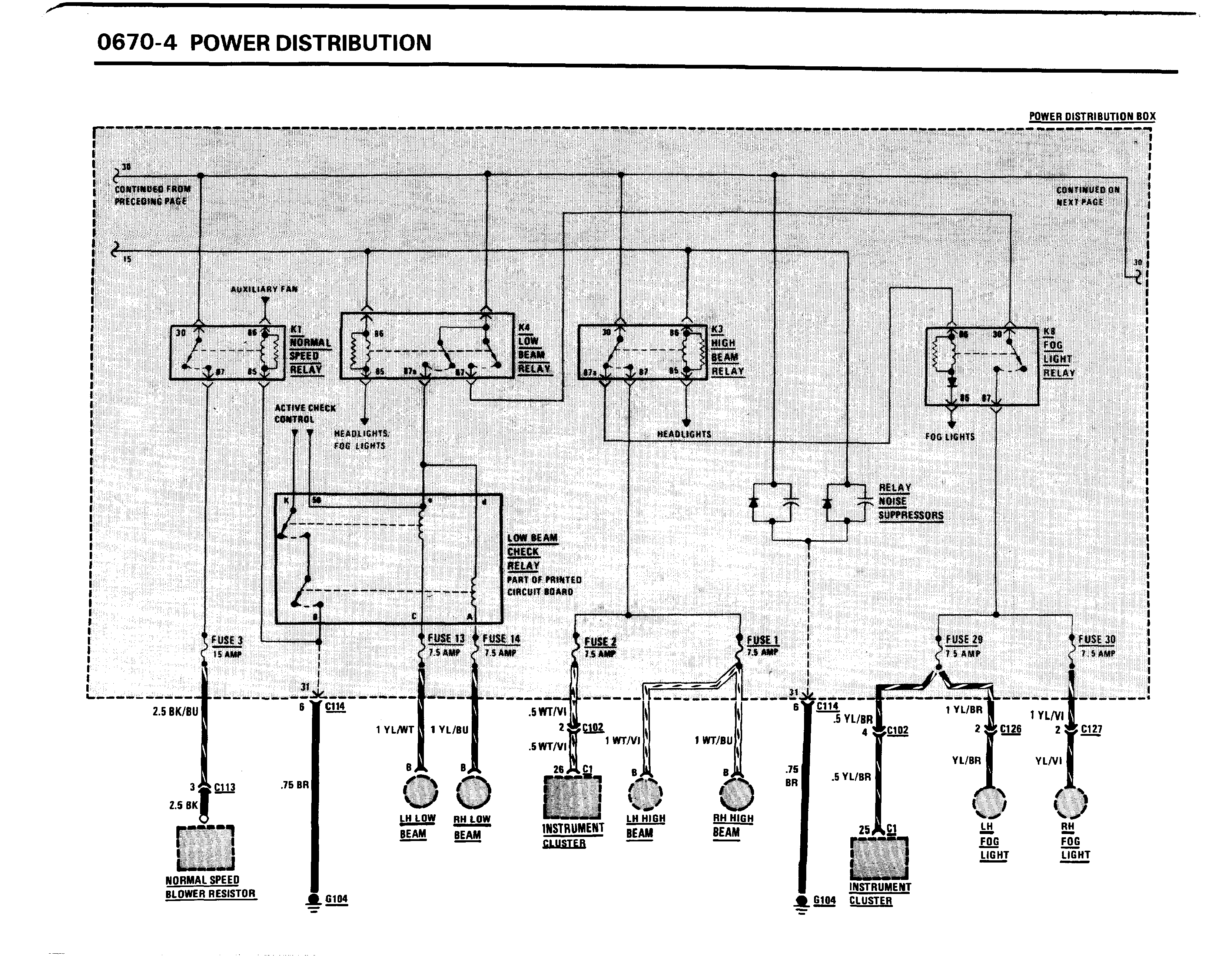Продолжение схемы блока предохранителей