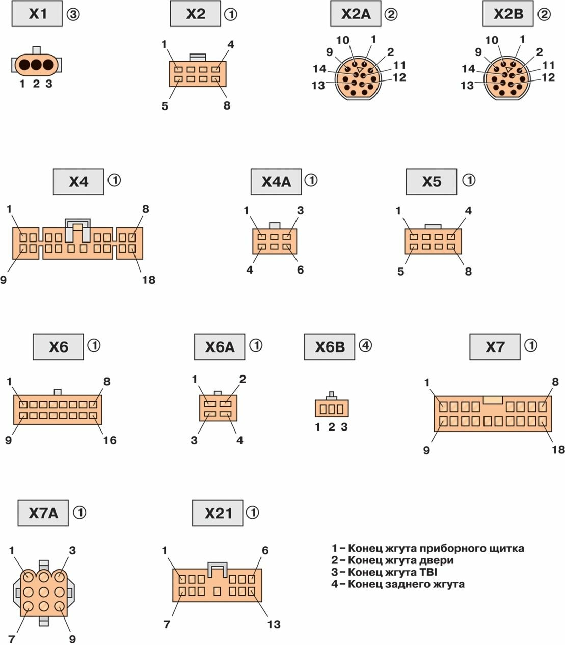 Х2А........Соединитель (14 штифтов) для жгутов: дверного и передней двери (левой)