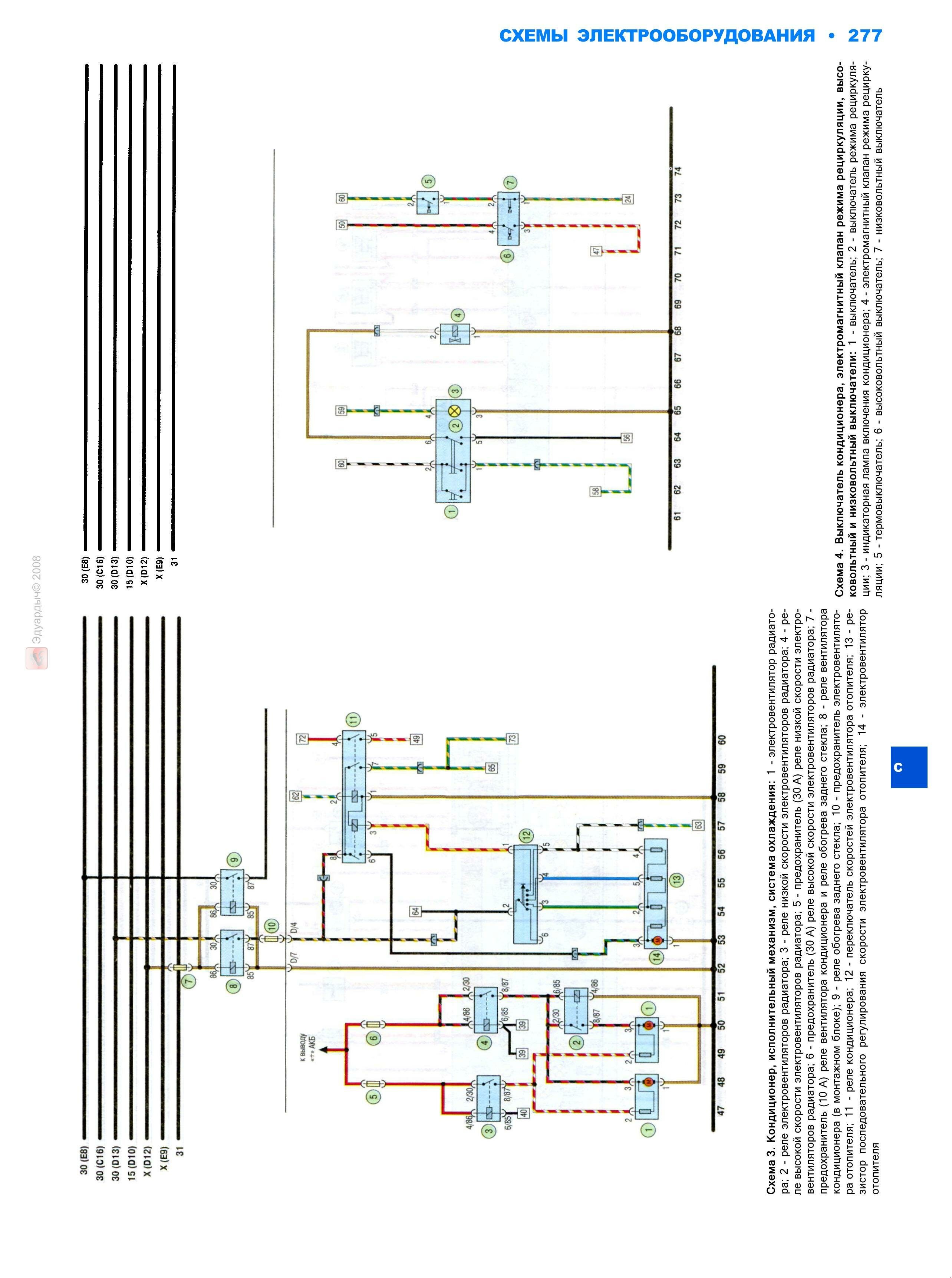 Эл.схема кондиционера и его выключателя, электромагнитного клапана режима рецеркуляции, высоко и низковольтного выключателя, исполнительного механизма, системы охлаждения