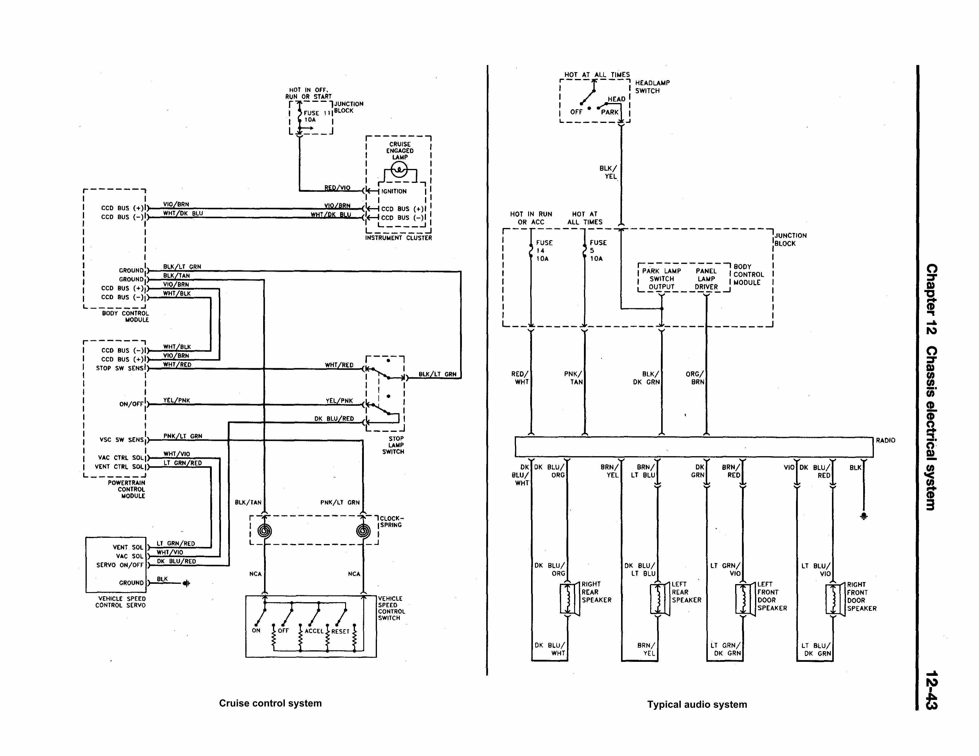 Система круиз контроль и подключение аудиоколонок Додж Стратус - схема