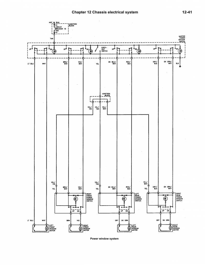 Схема принципиальная подключения моторов управления стеклоподъёмниками