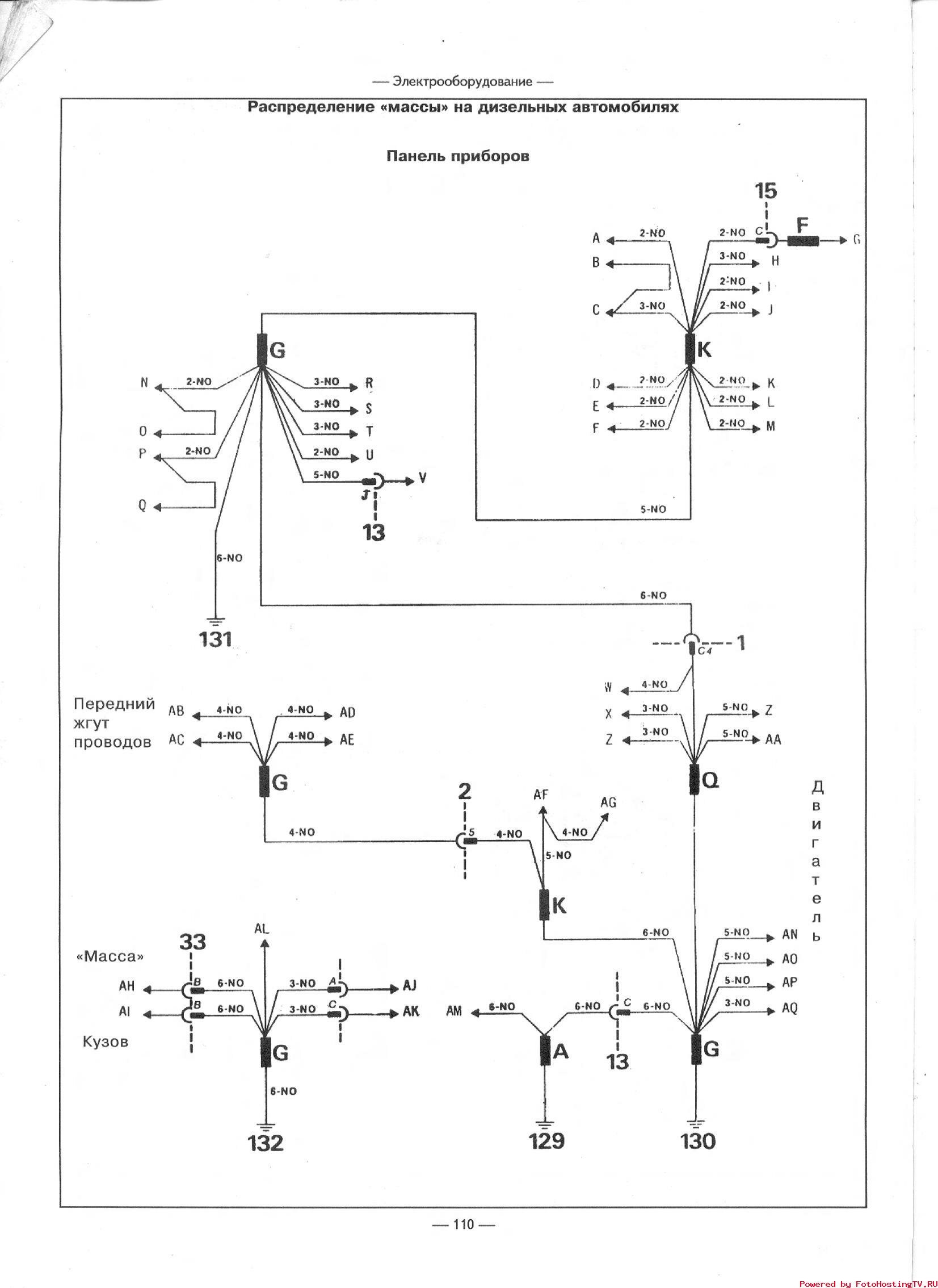 Схема освещения панели приборов и контрольных приборов