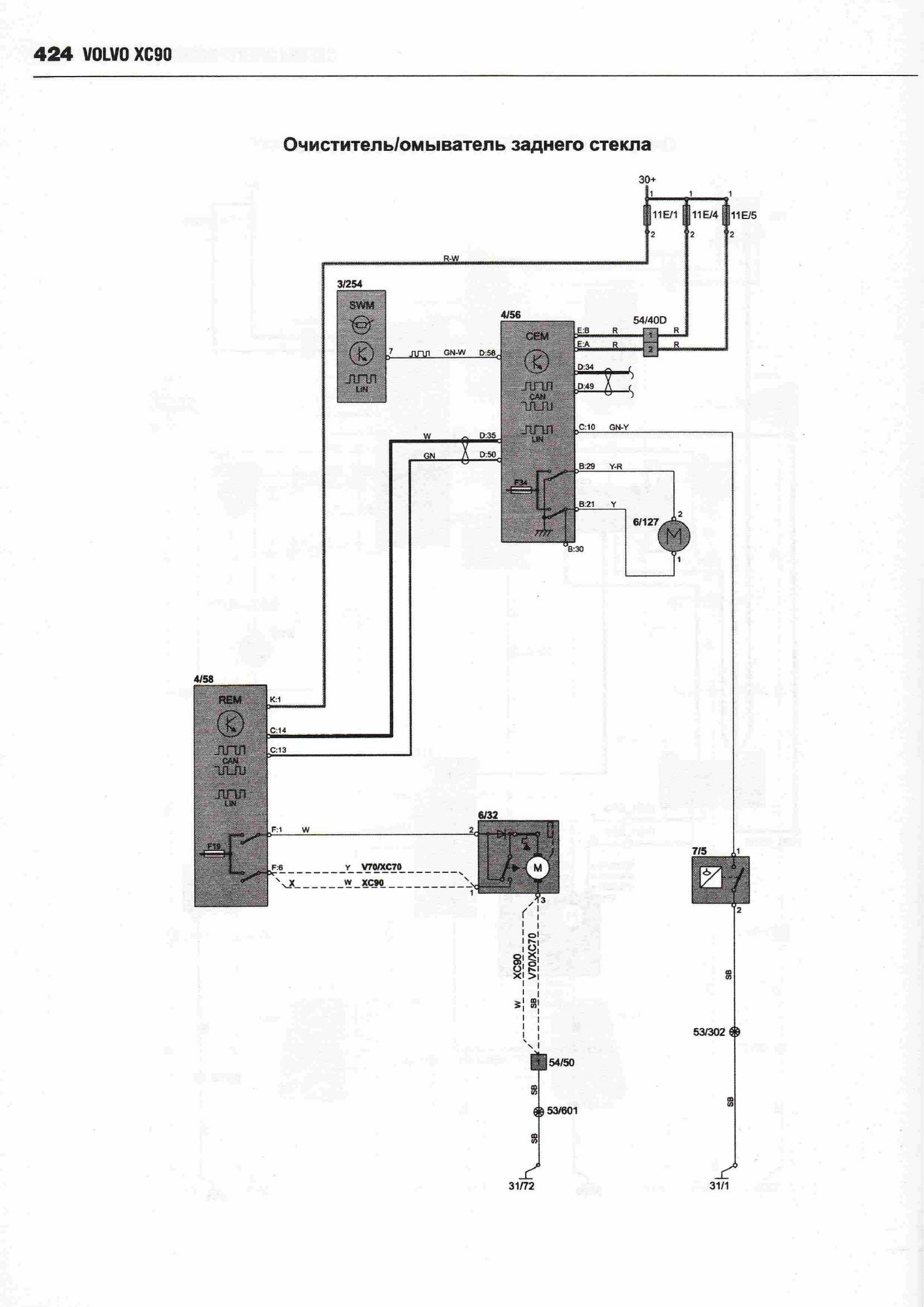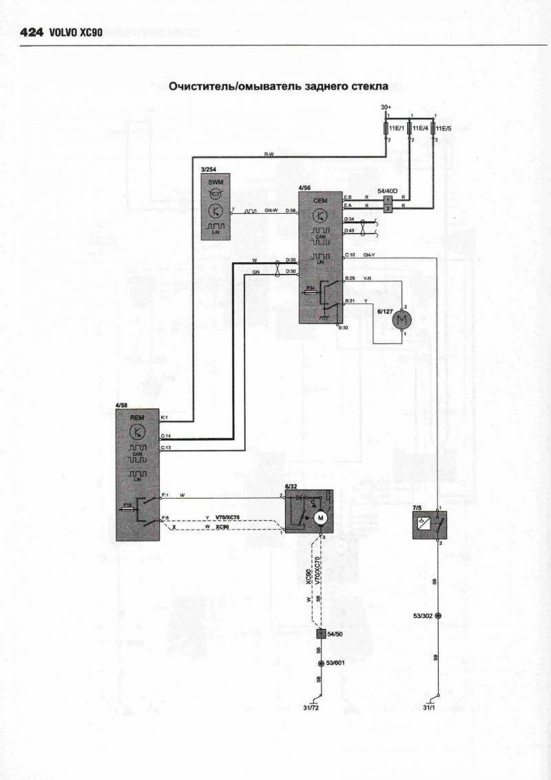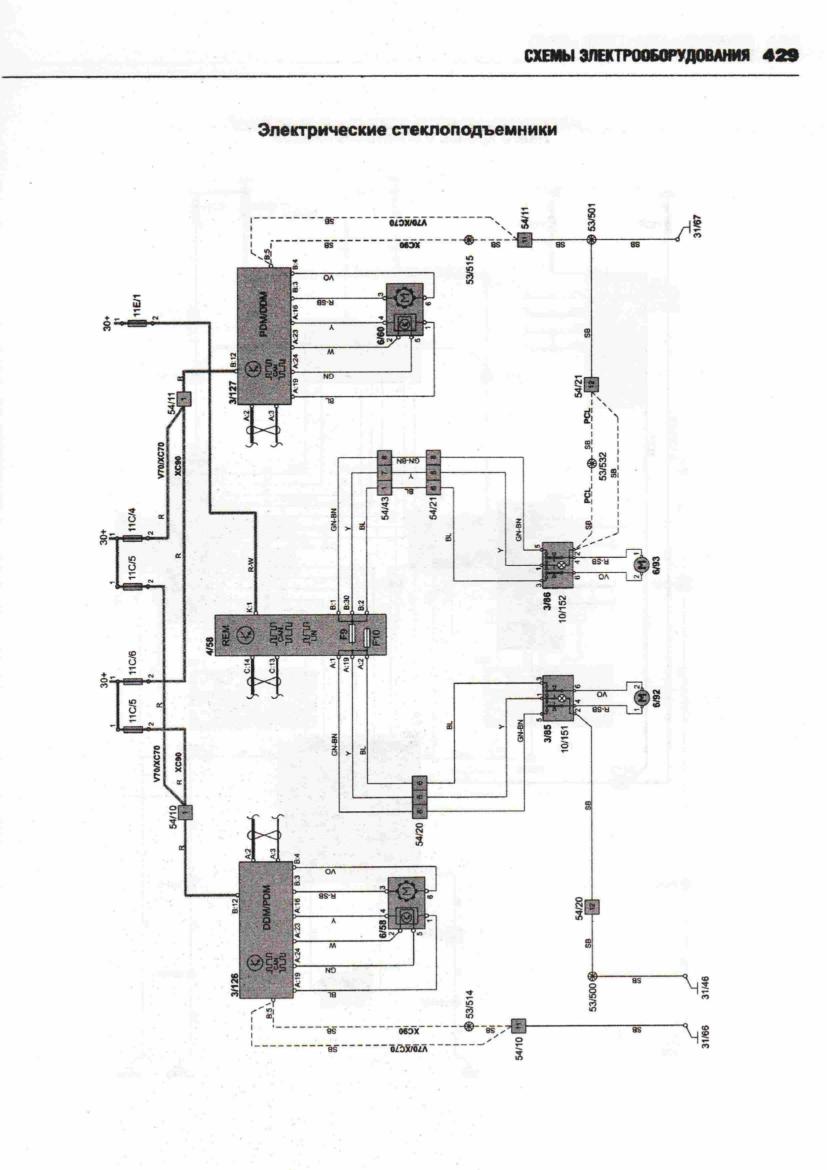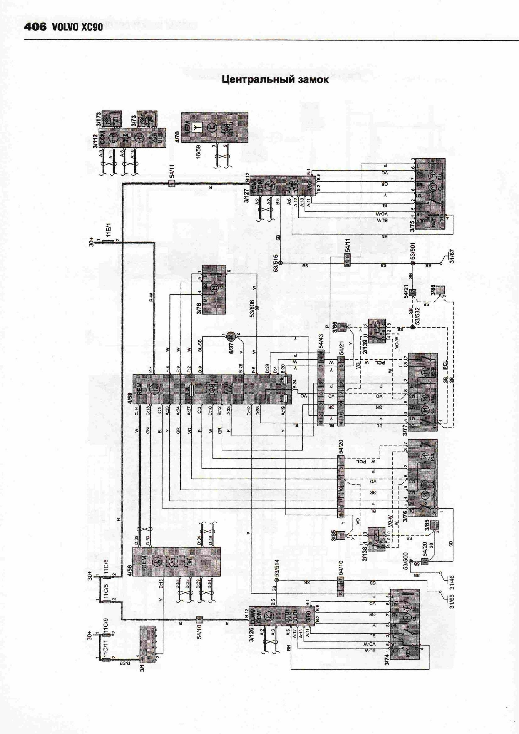 Схема электрическая центрального замка Вольво ХС90