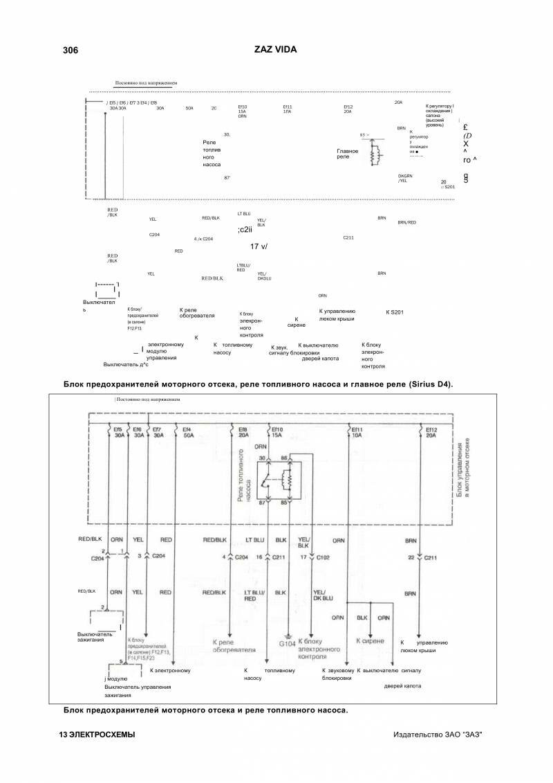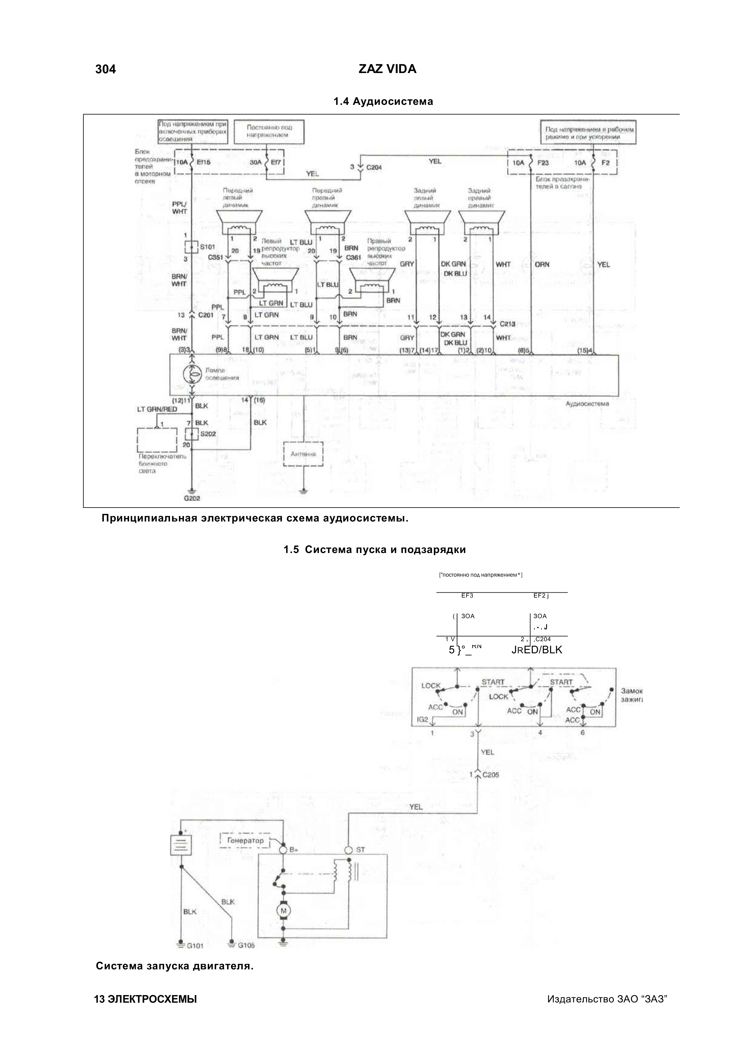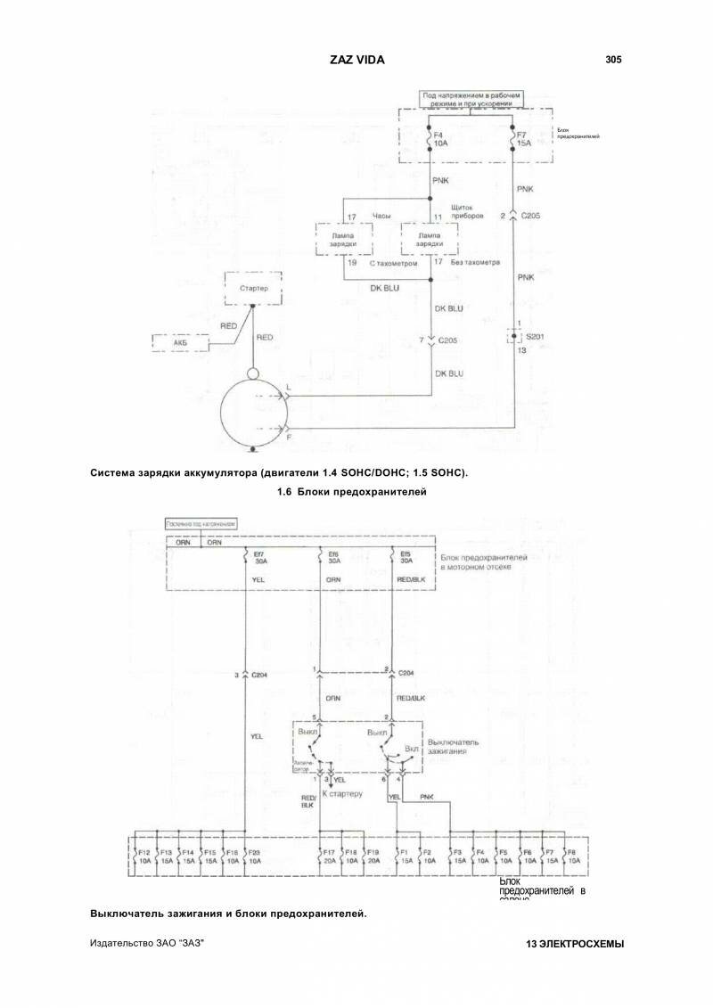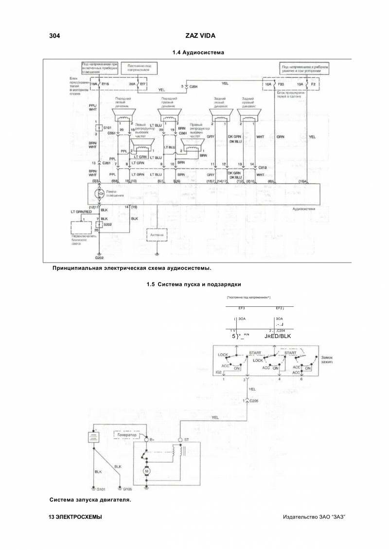 Схема пуска двигателя и аудиосистема Zaz Vida
