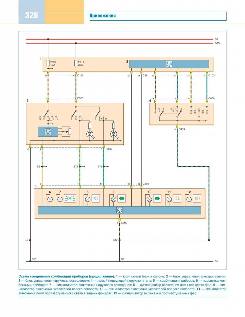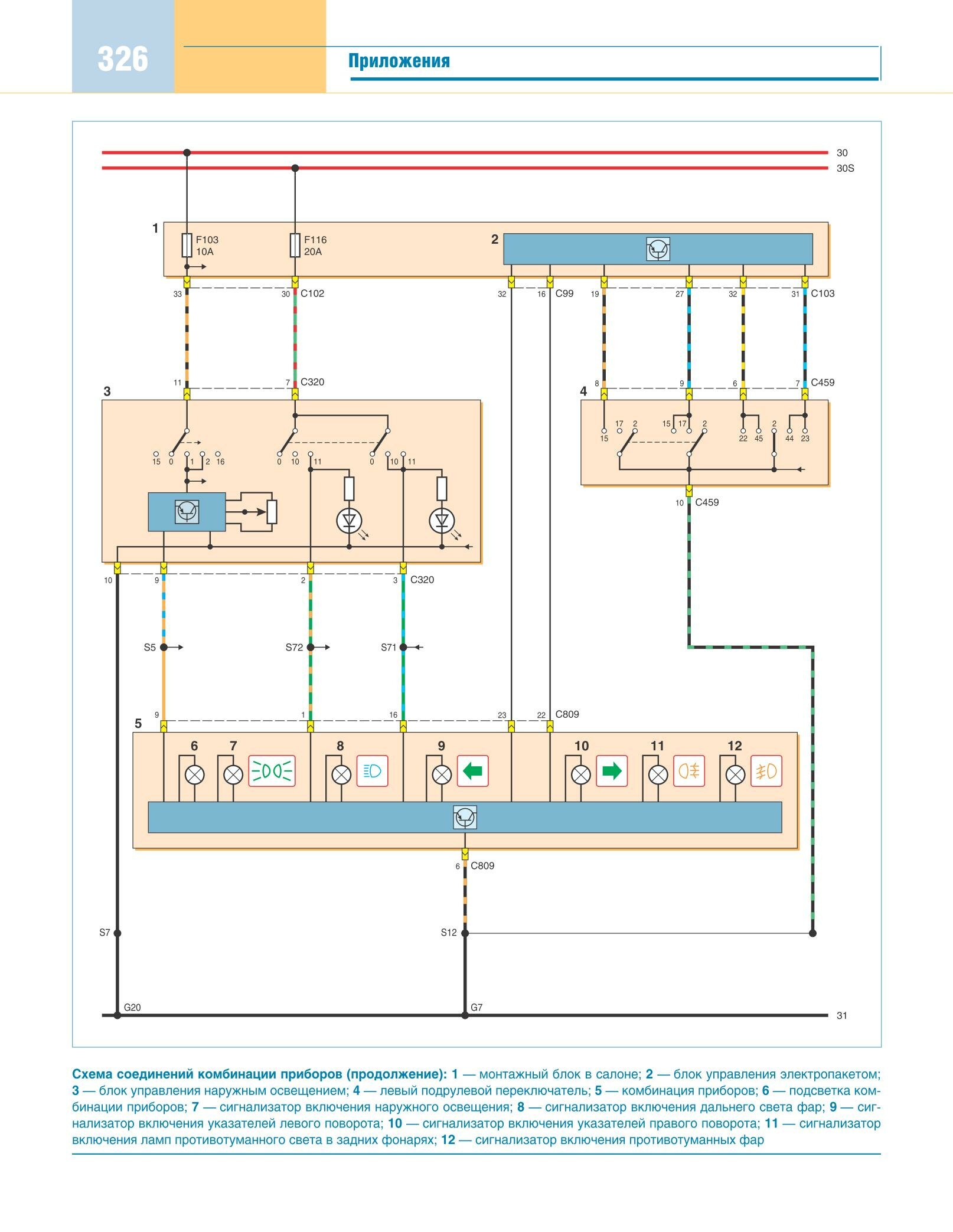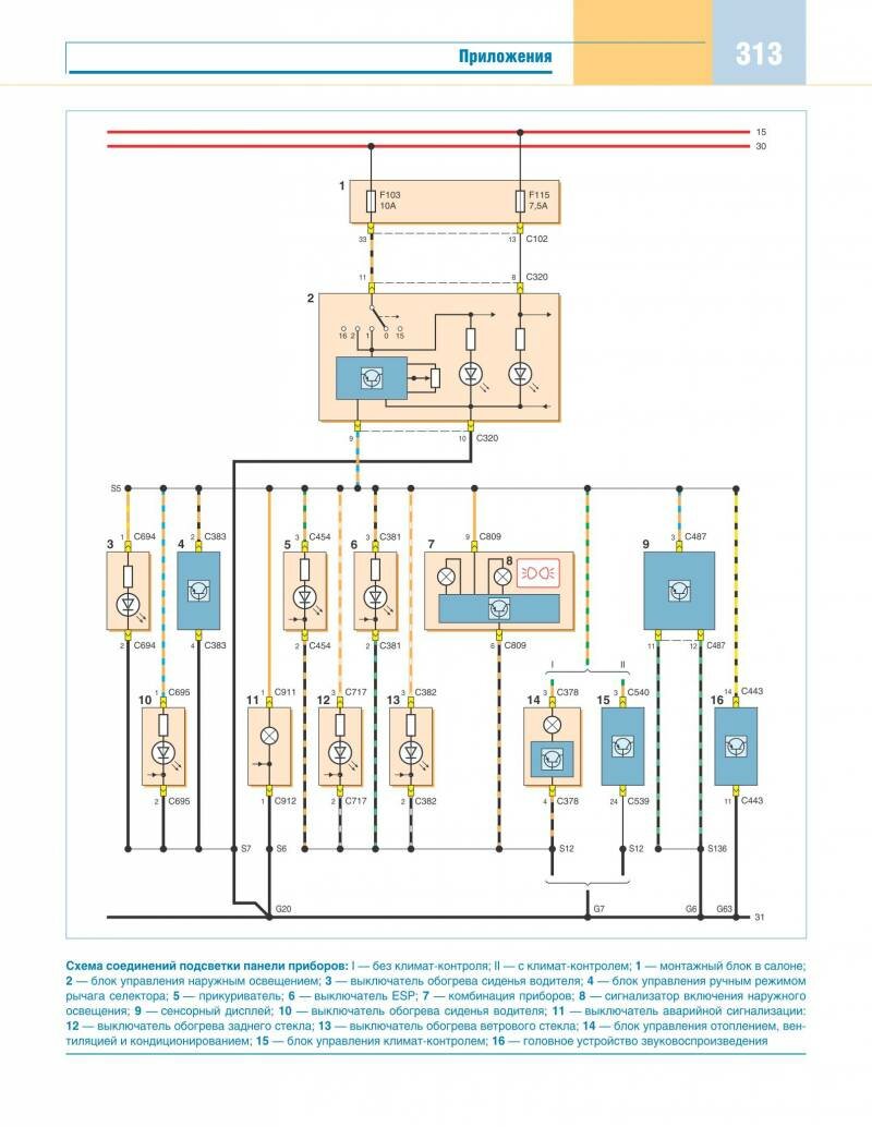 Схема соединений подсветки панели приборов