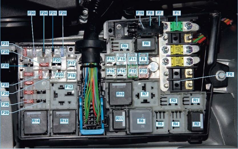 Монтажный блок в моторном отсеке Форд Фокус 2