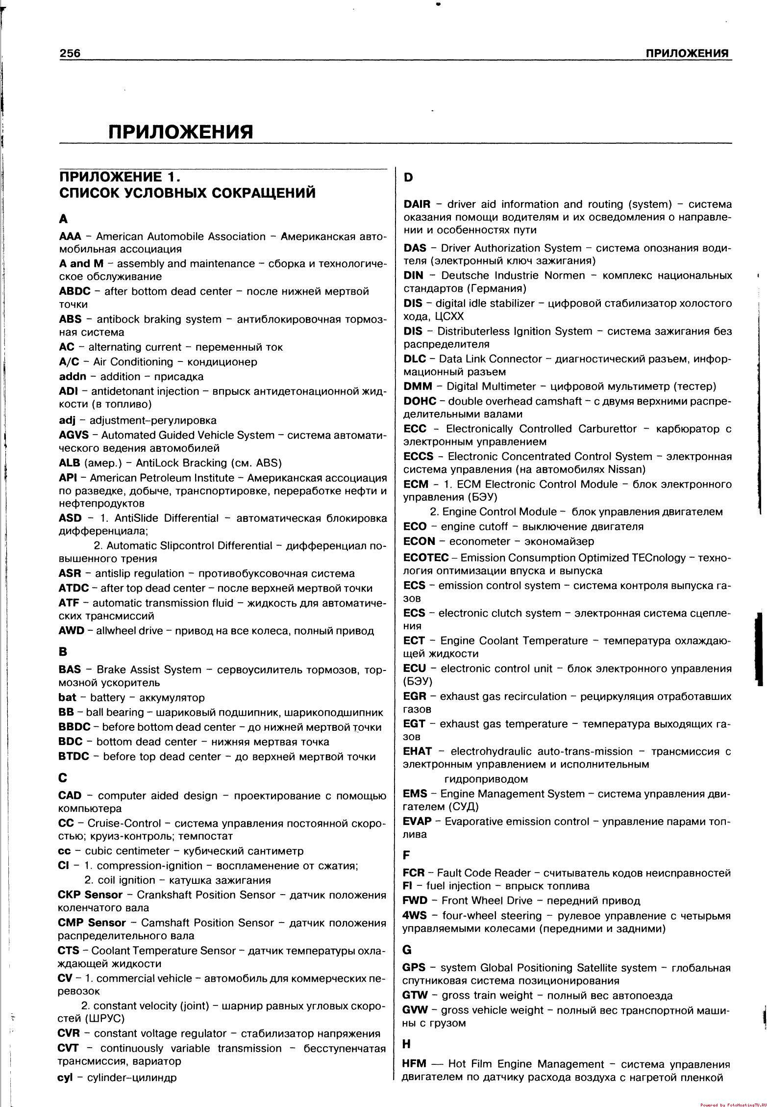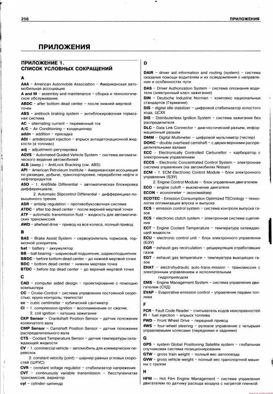 Список сокращений на схемах электрооборудования FORD MONDEO