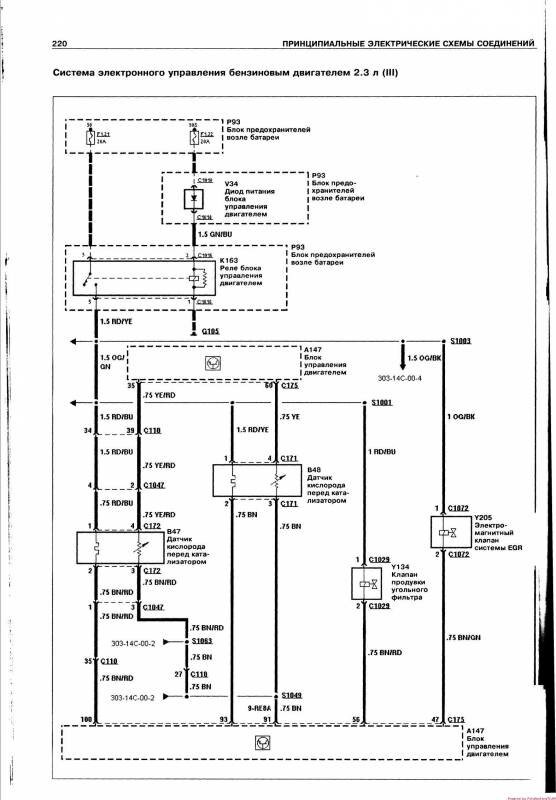 Схема системы зажигания бензинового двигателя автомобиля Форд