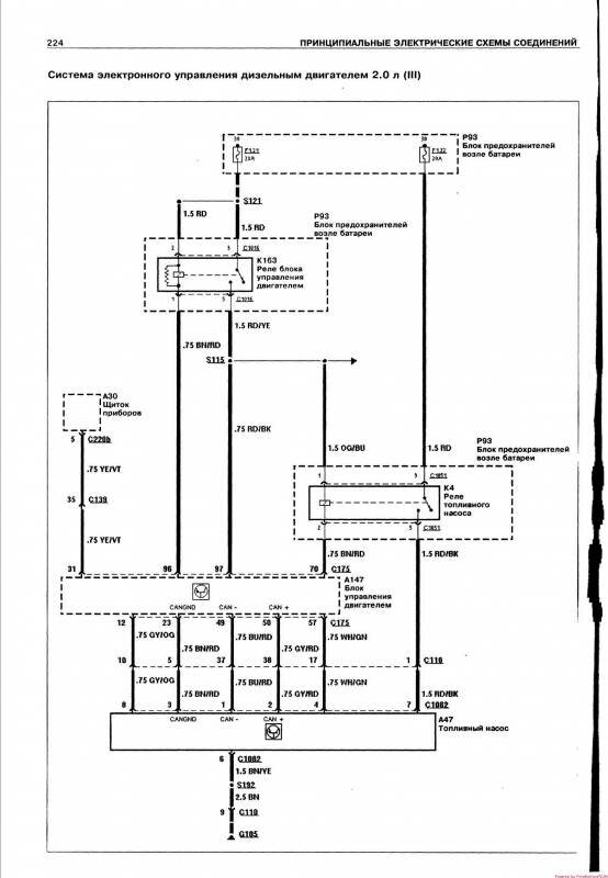 Схема системы пуска с системой предварительного прогрева впускного воздуха, используемой для нагрева топлива Ford Transit