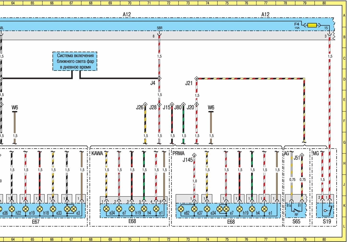 J80 Вывод указателей правого поворота 72Е