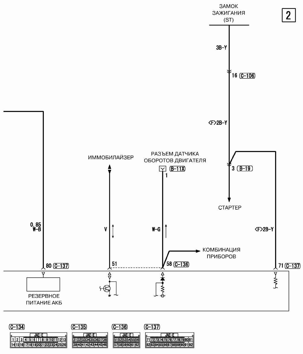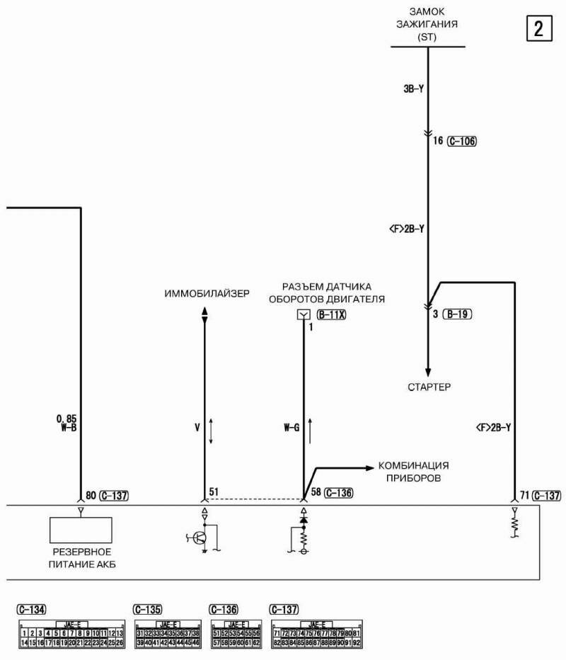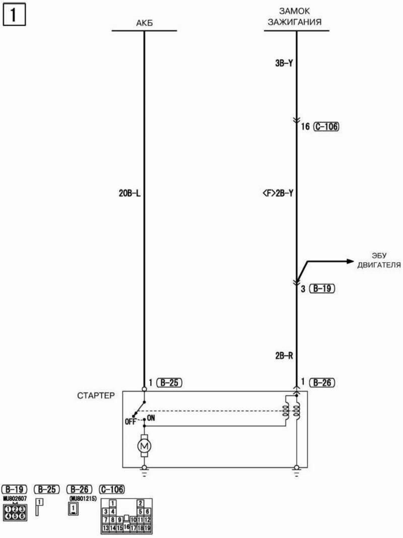 Электрооборудование Mitsubishi Outlander - схема соединения стартера и замка зажигания