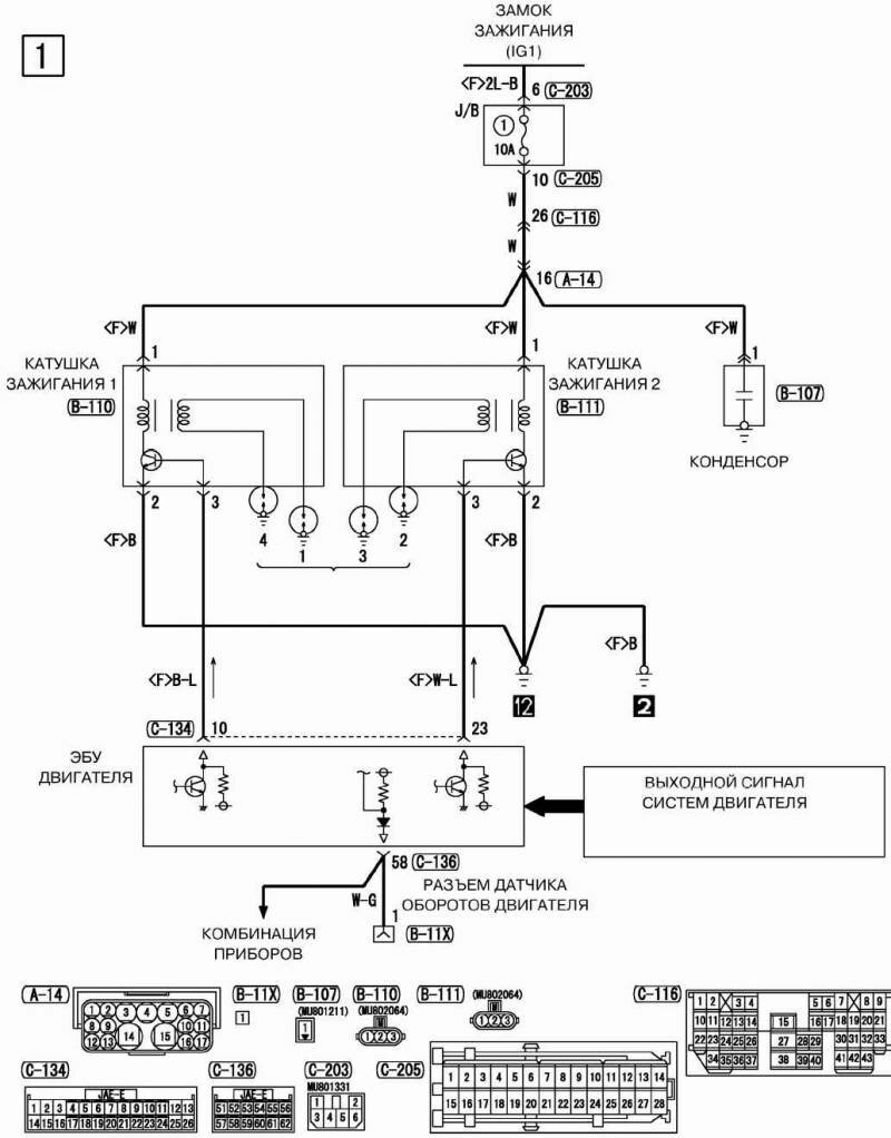 Электросхема диагностического разъёма Митсубиси Аутландер