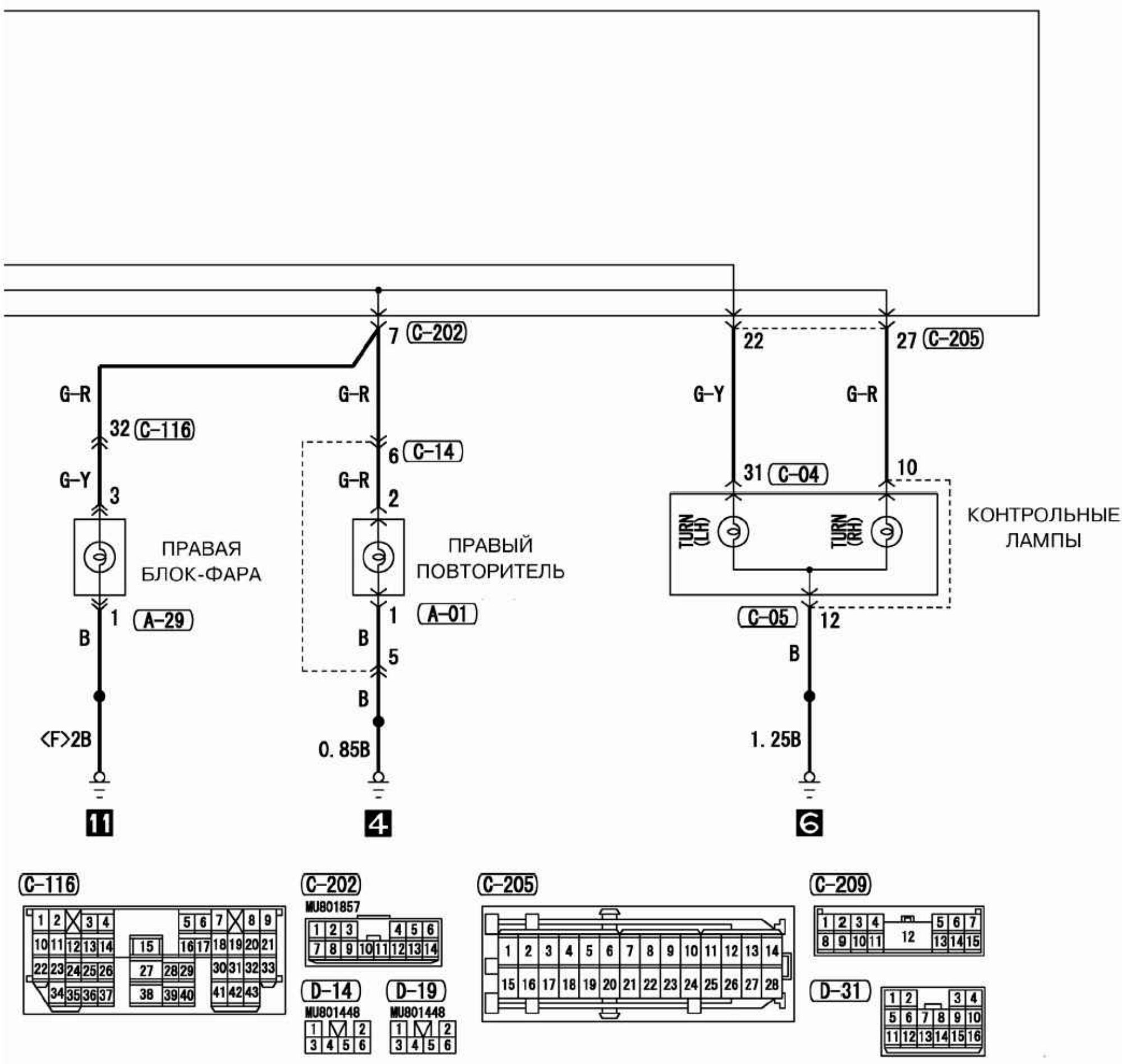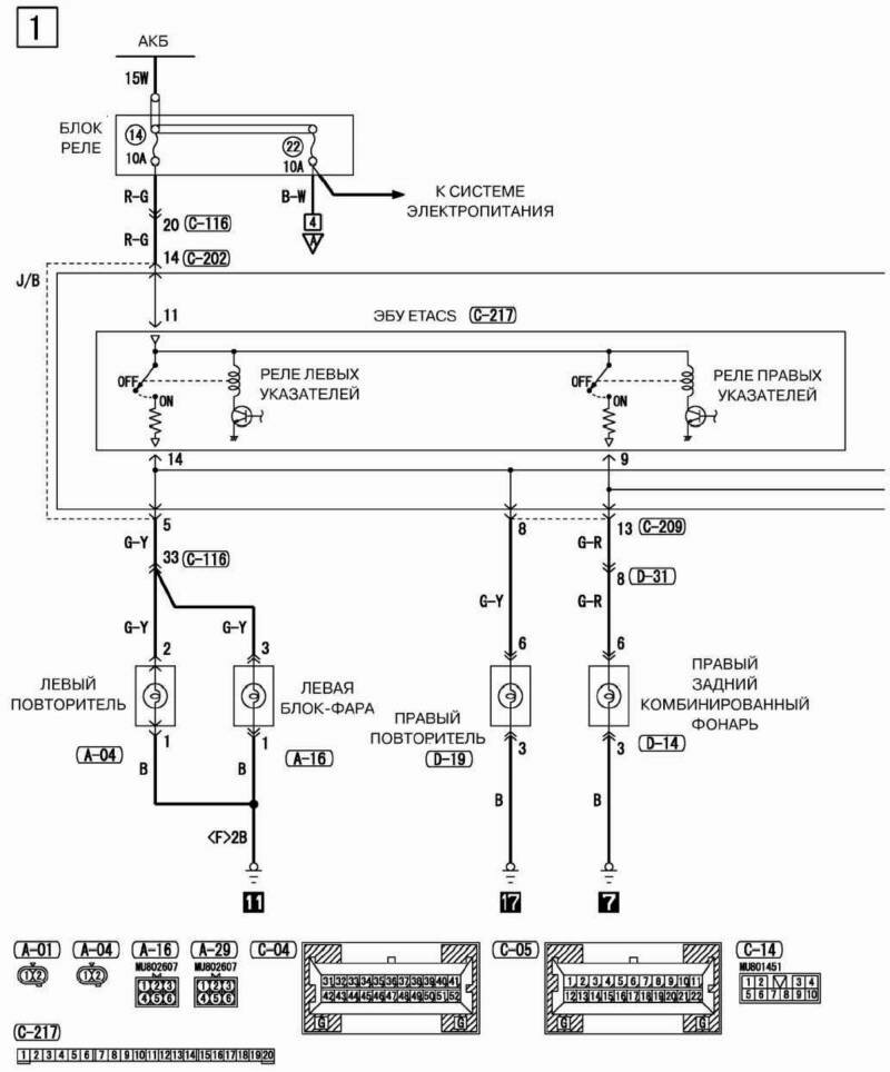 Электросхема переднего фонаря внедорожника Аутлэндер