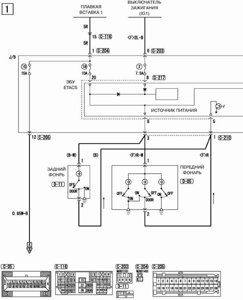 Схема концевого выключателя двери Mitsubishi Outlander