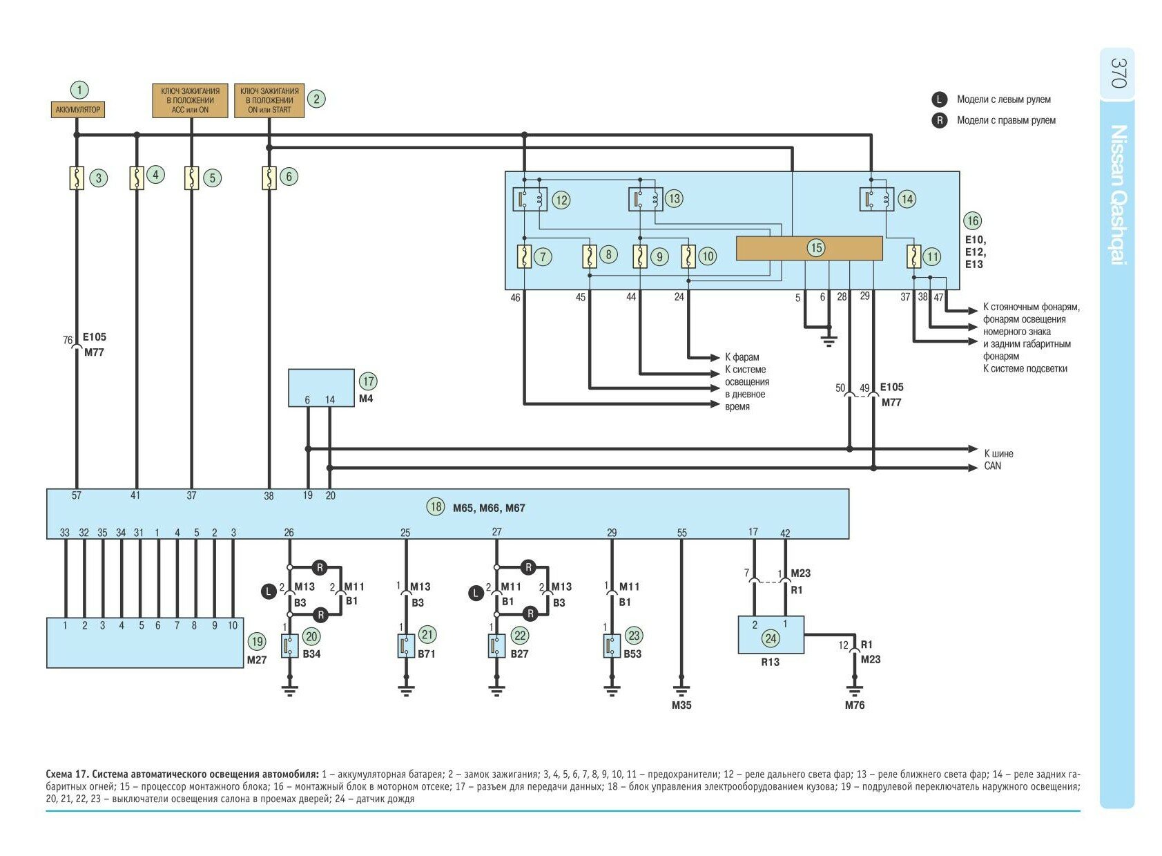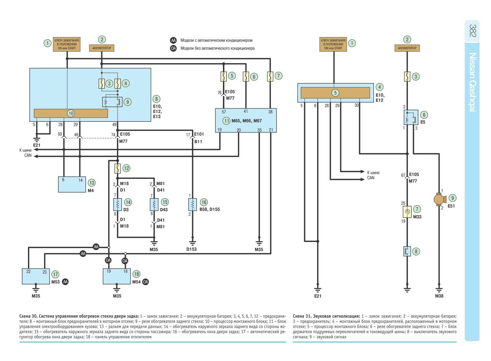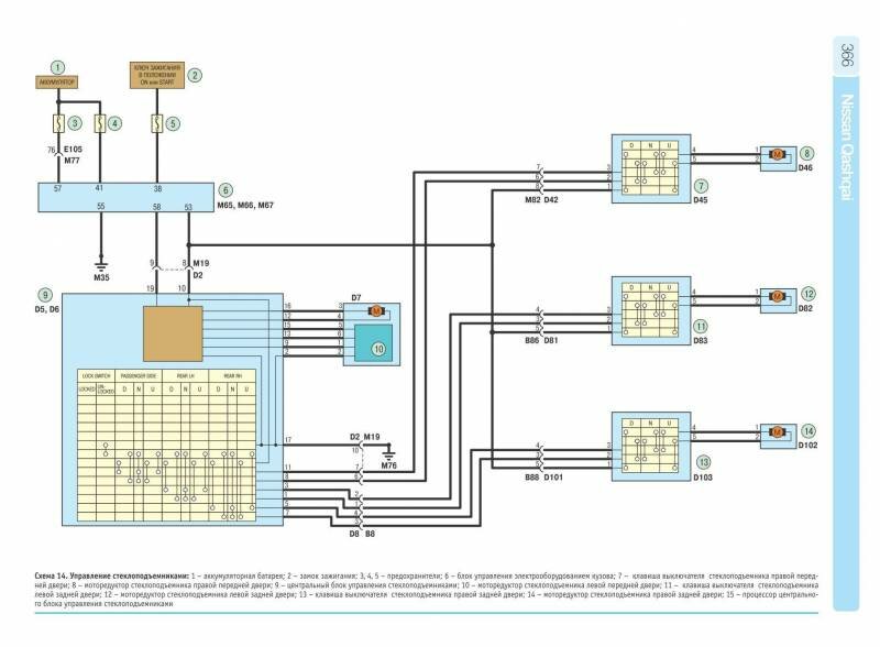 Схема управления стеклоподъёмниками Nissan Qashqai