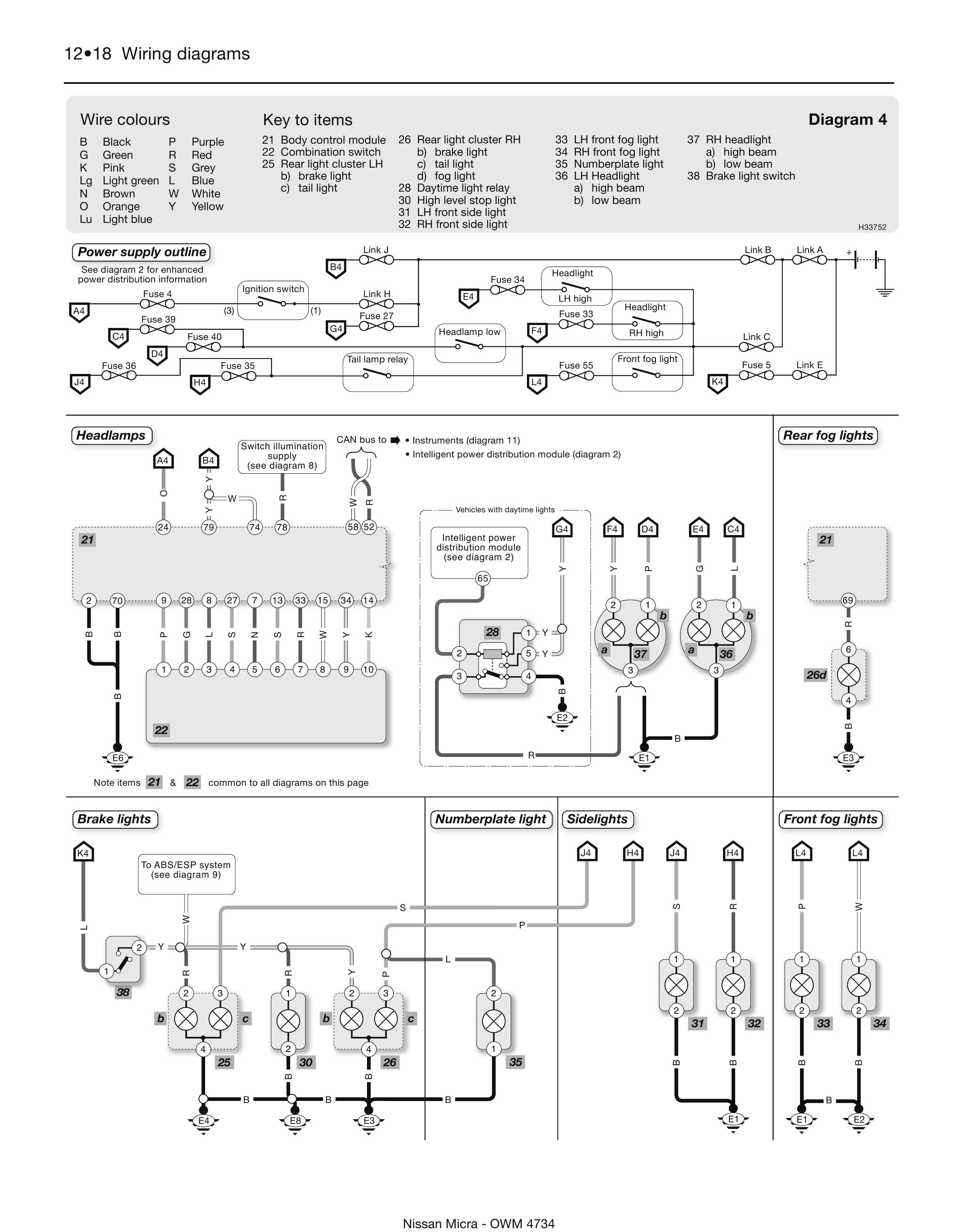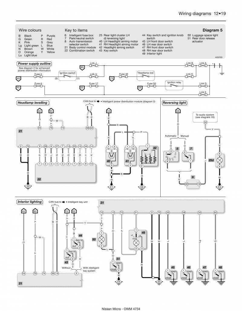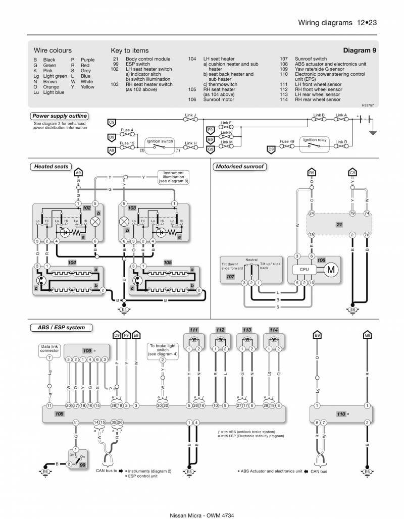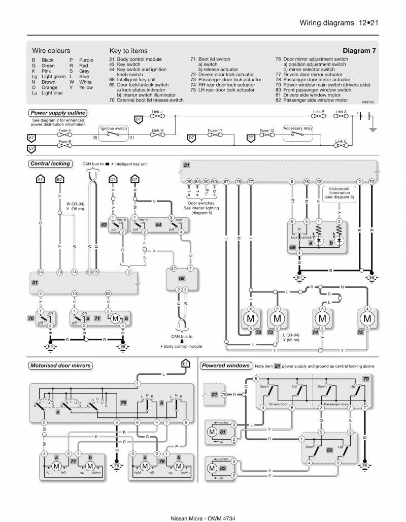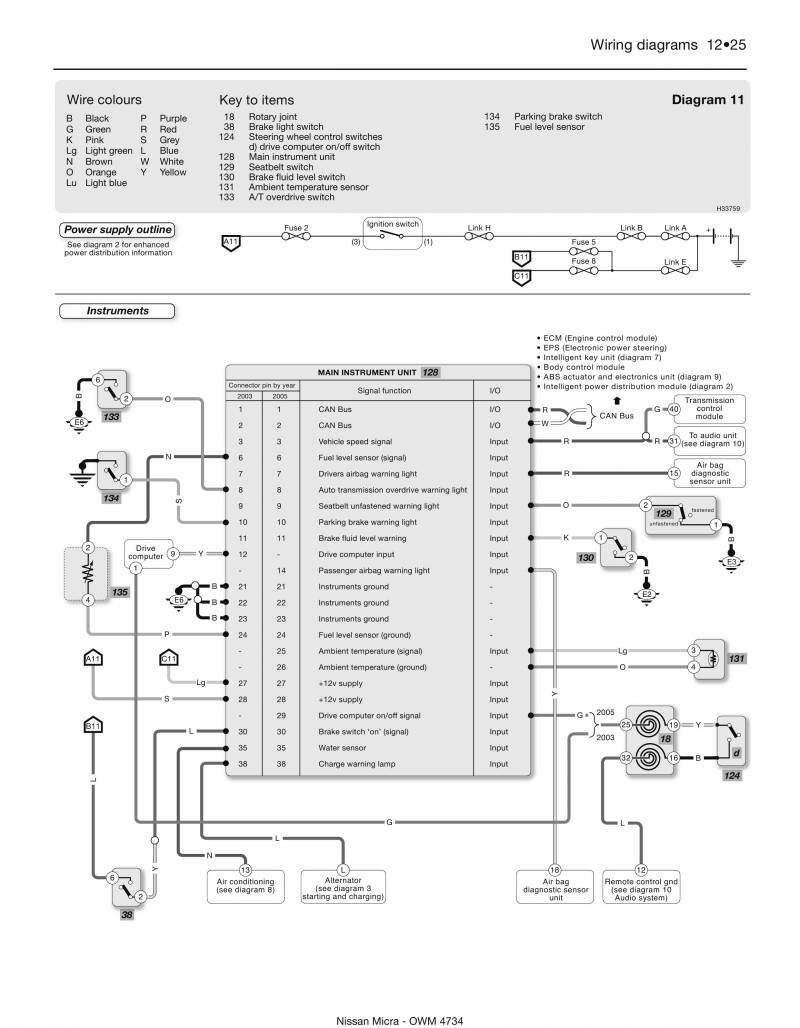 Обозначение элементов и проводов на схемах Nissan Micra