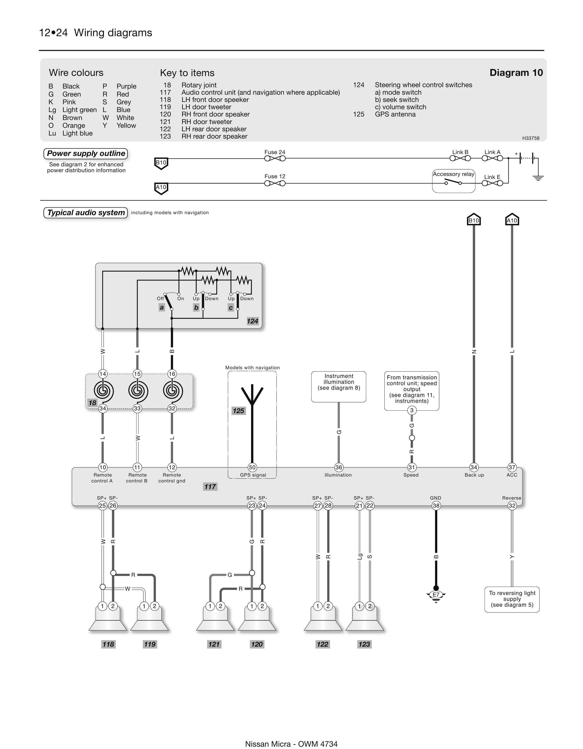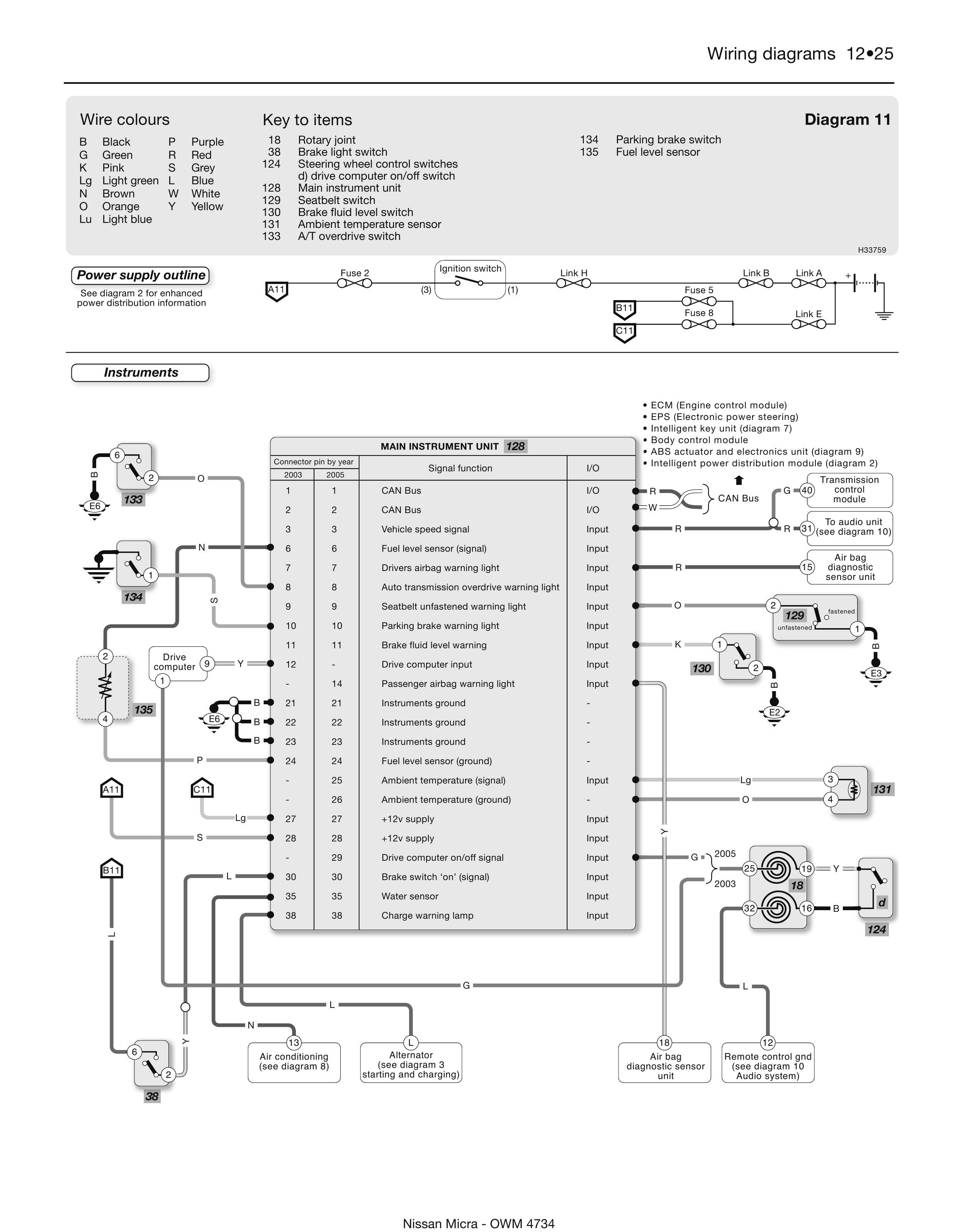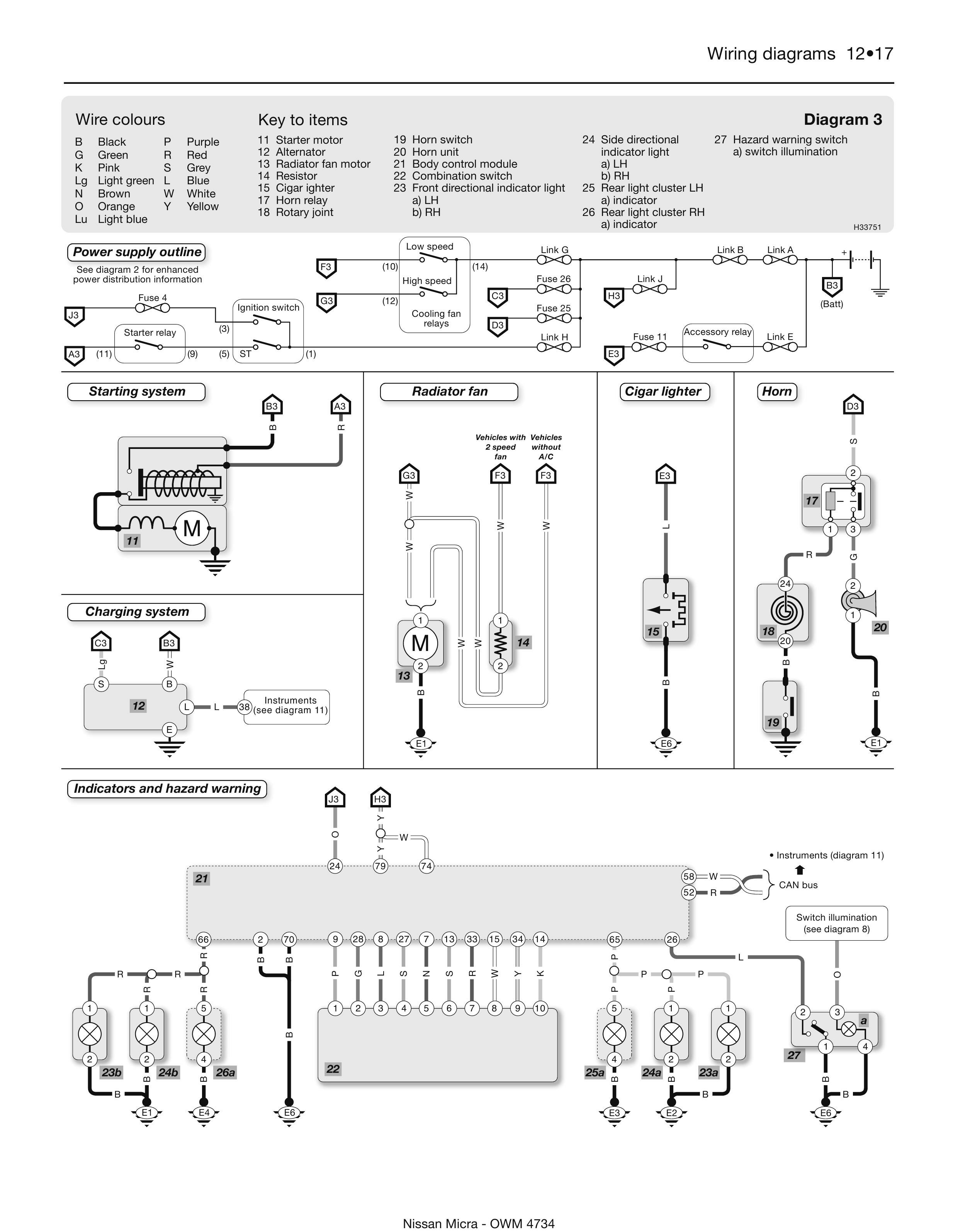 Обозначение элементов и проводов на схемах Nissan Micra