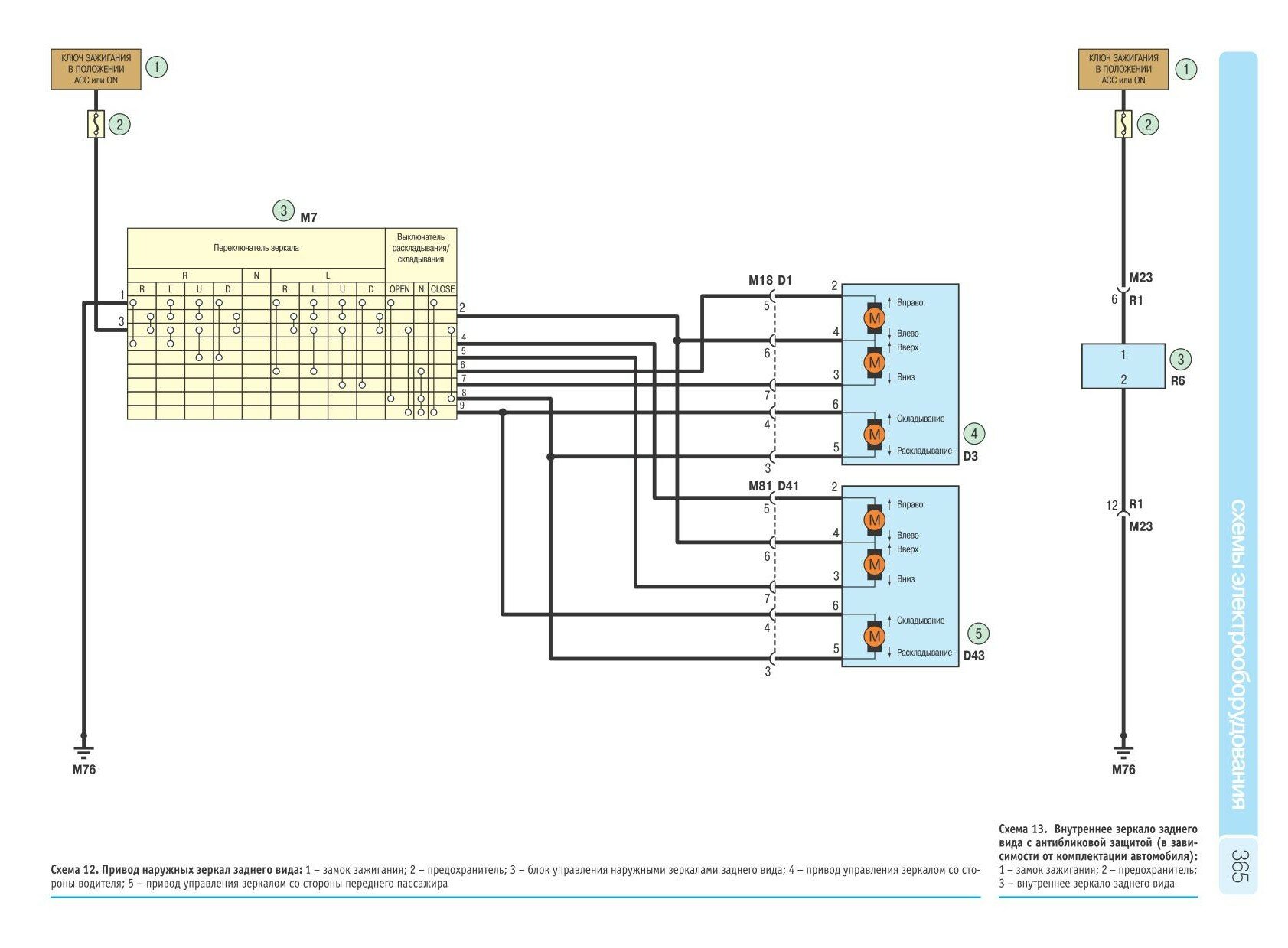 Схема принципиальная стеклоподъёмников и привода зеркал