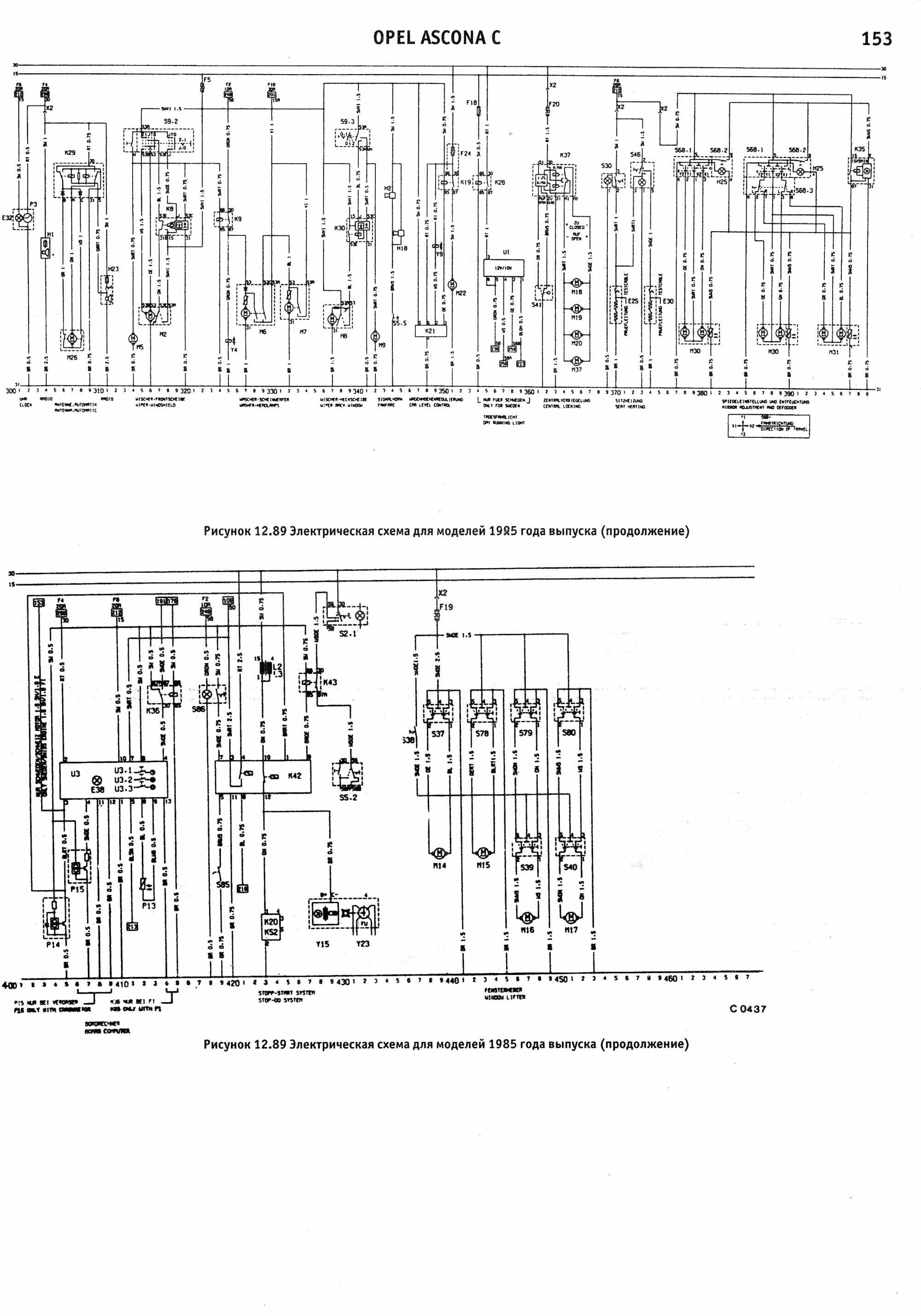 Схема электрическая Opel Ascona 1988