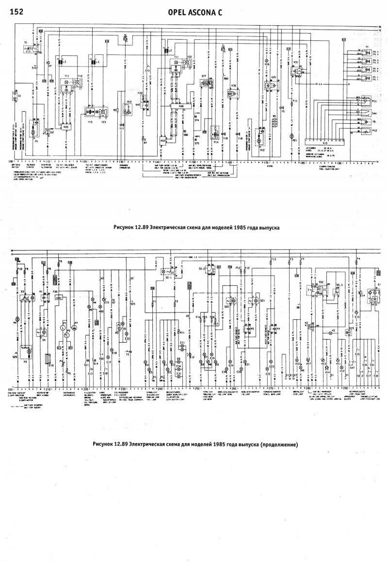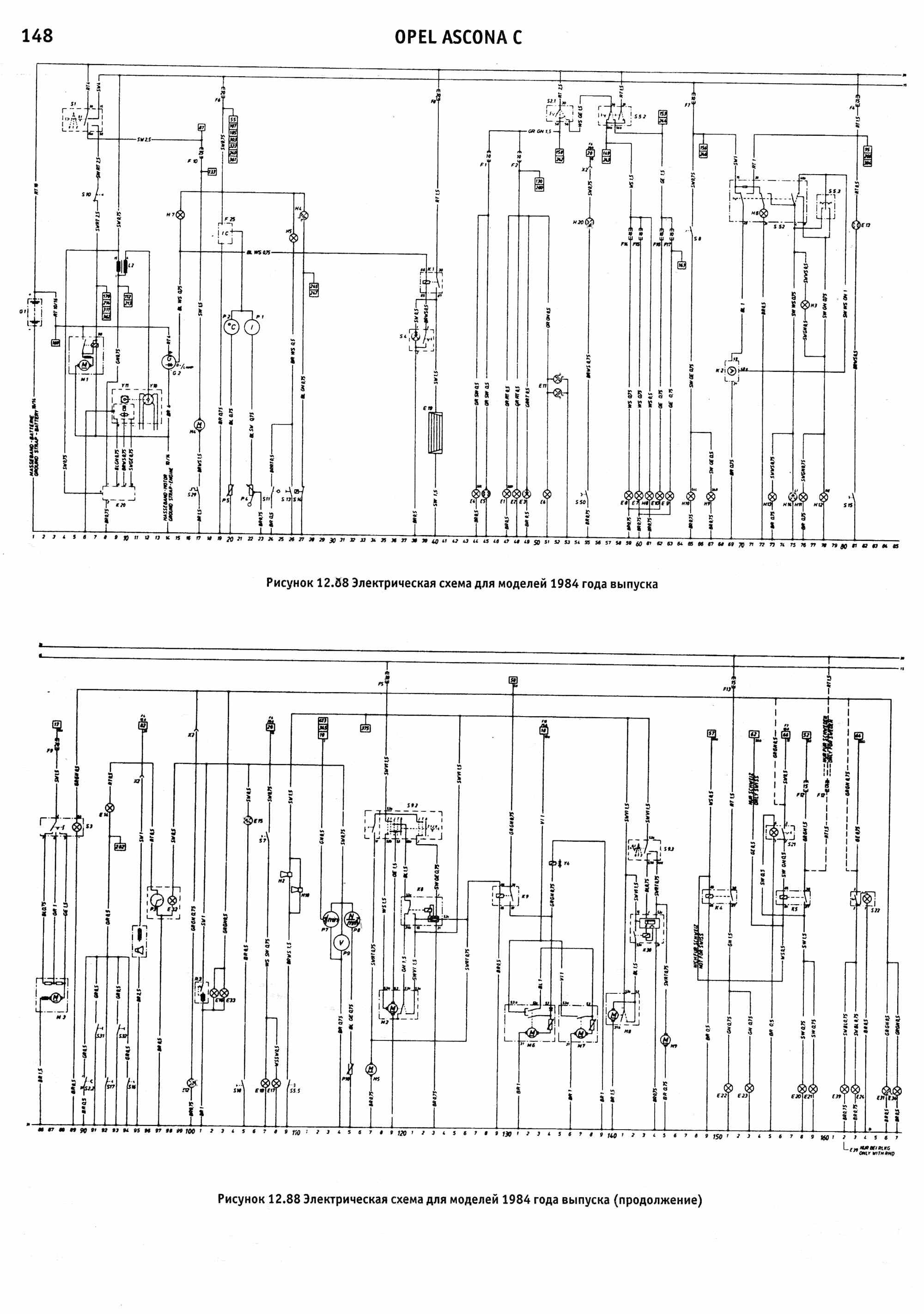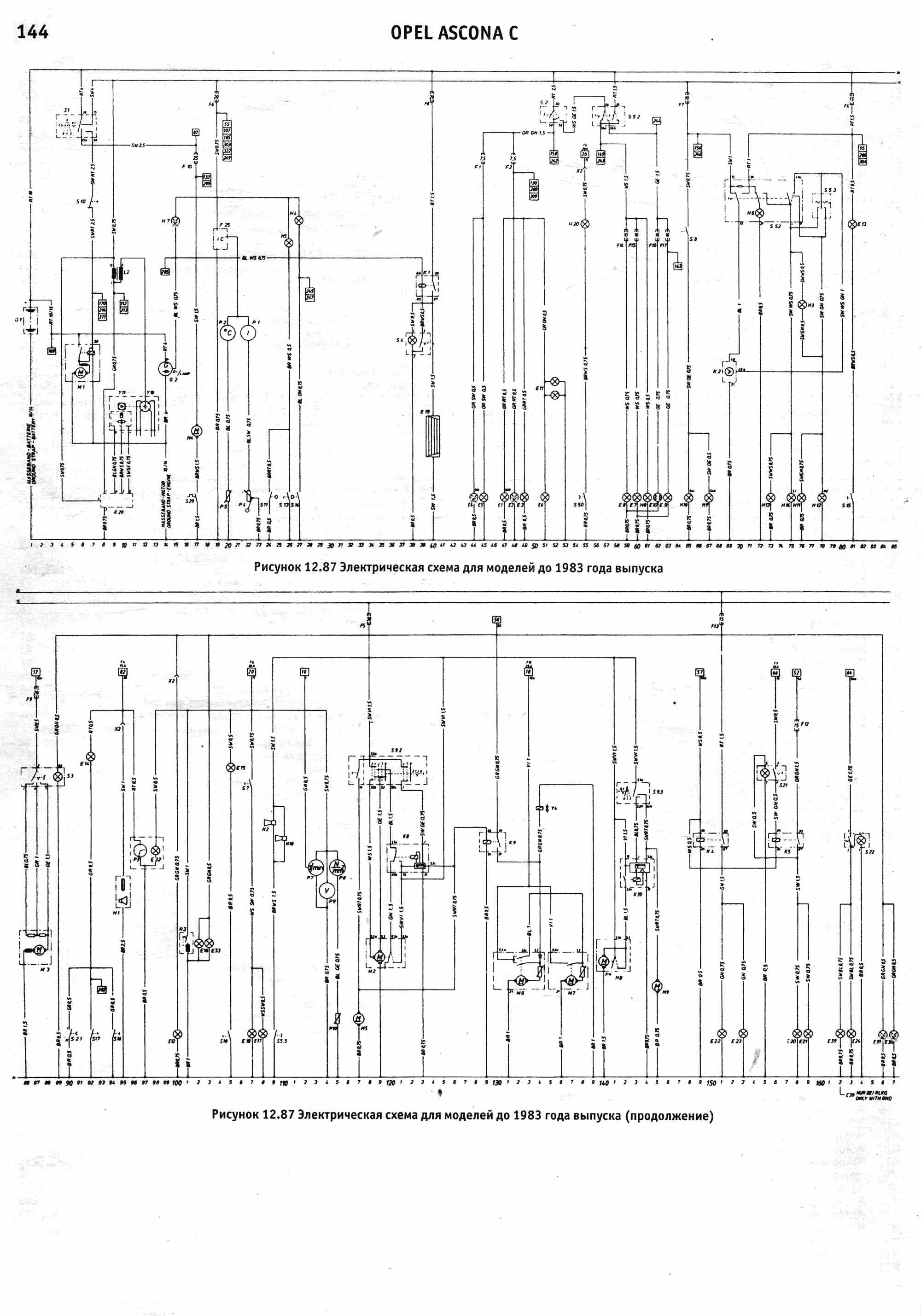 Электросхема Опель для моделей Аскона 1984г.