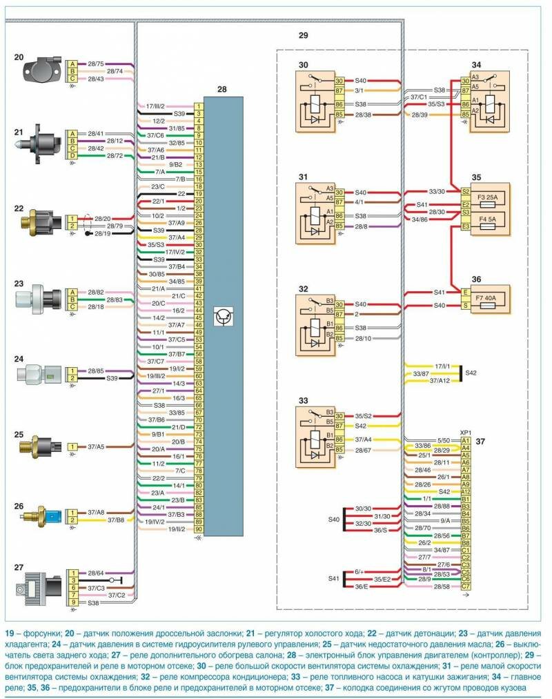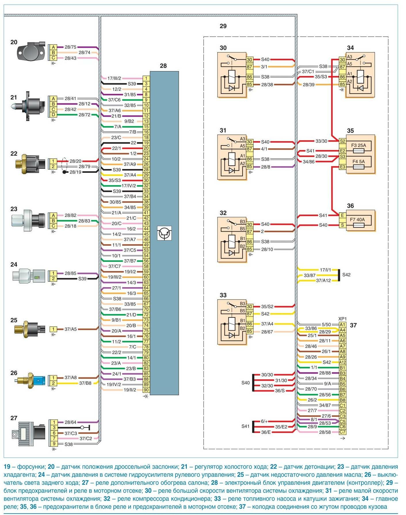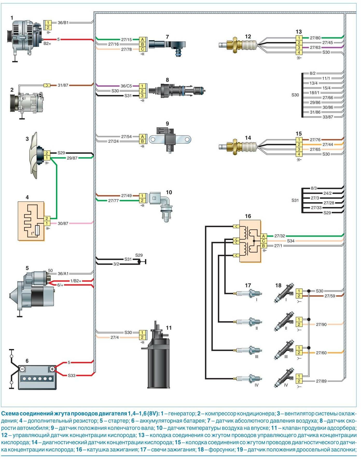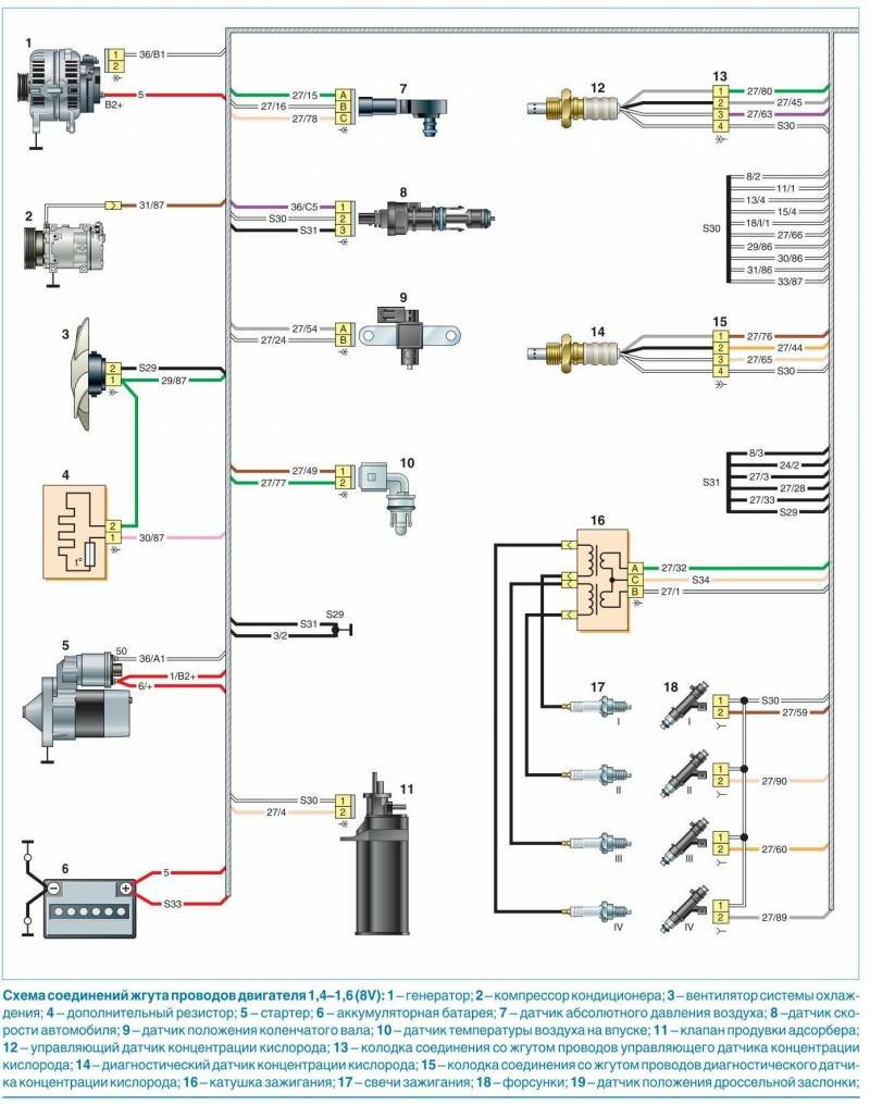 Схема соединений жгута проводов Renault Sandero двигателя 1,4-1,6