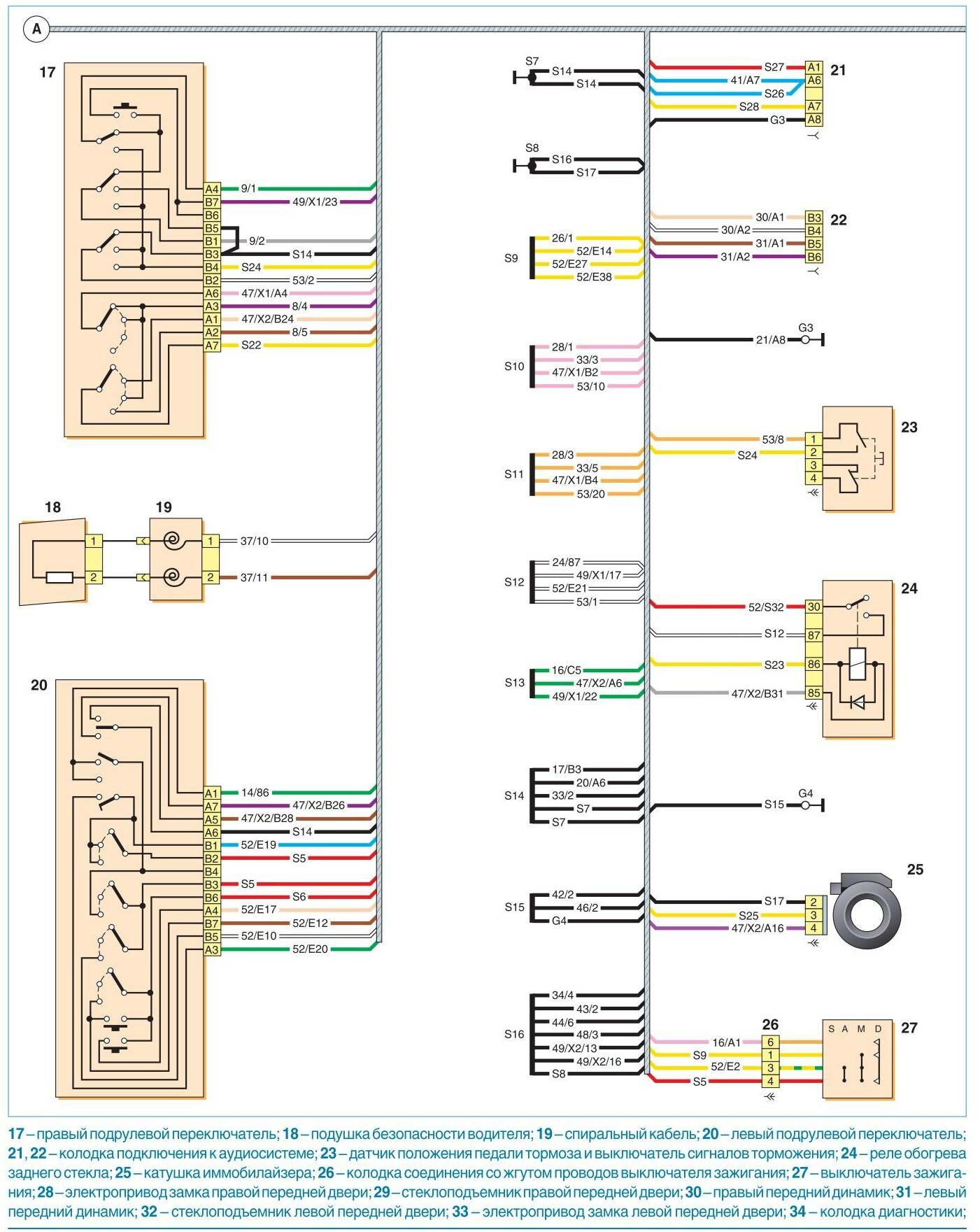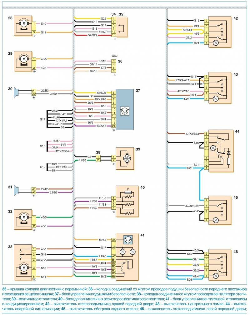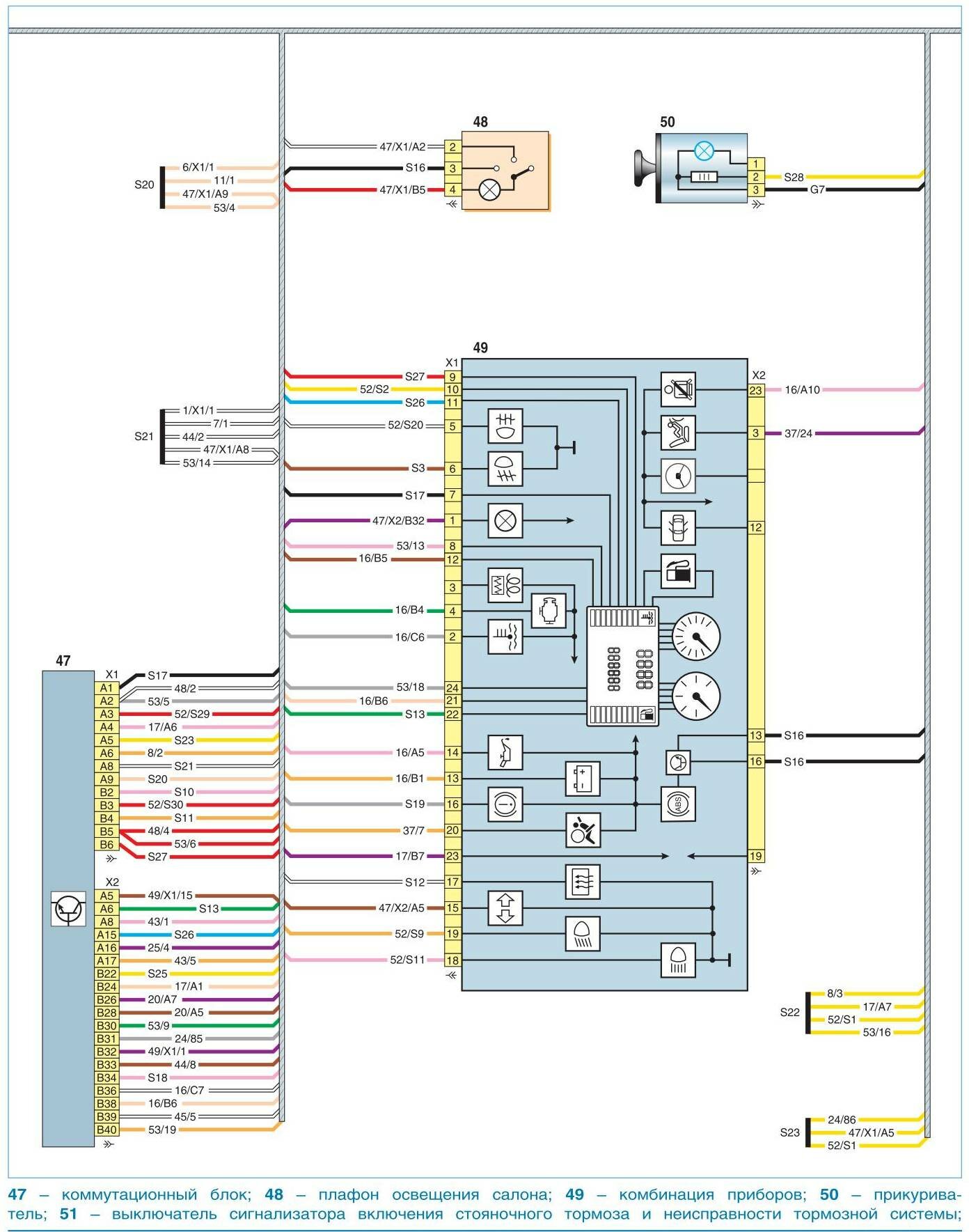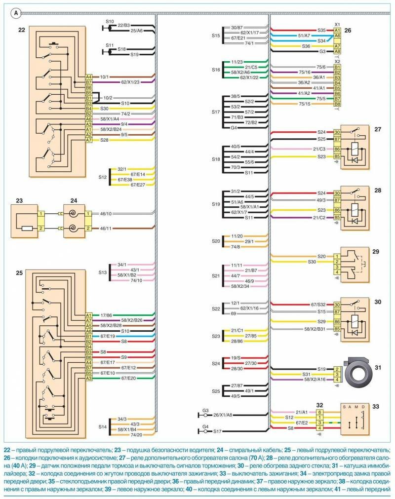 Схема электрическая соединений проводов подушки безопастности переднего пасажира и освещения ящика