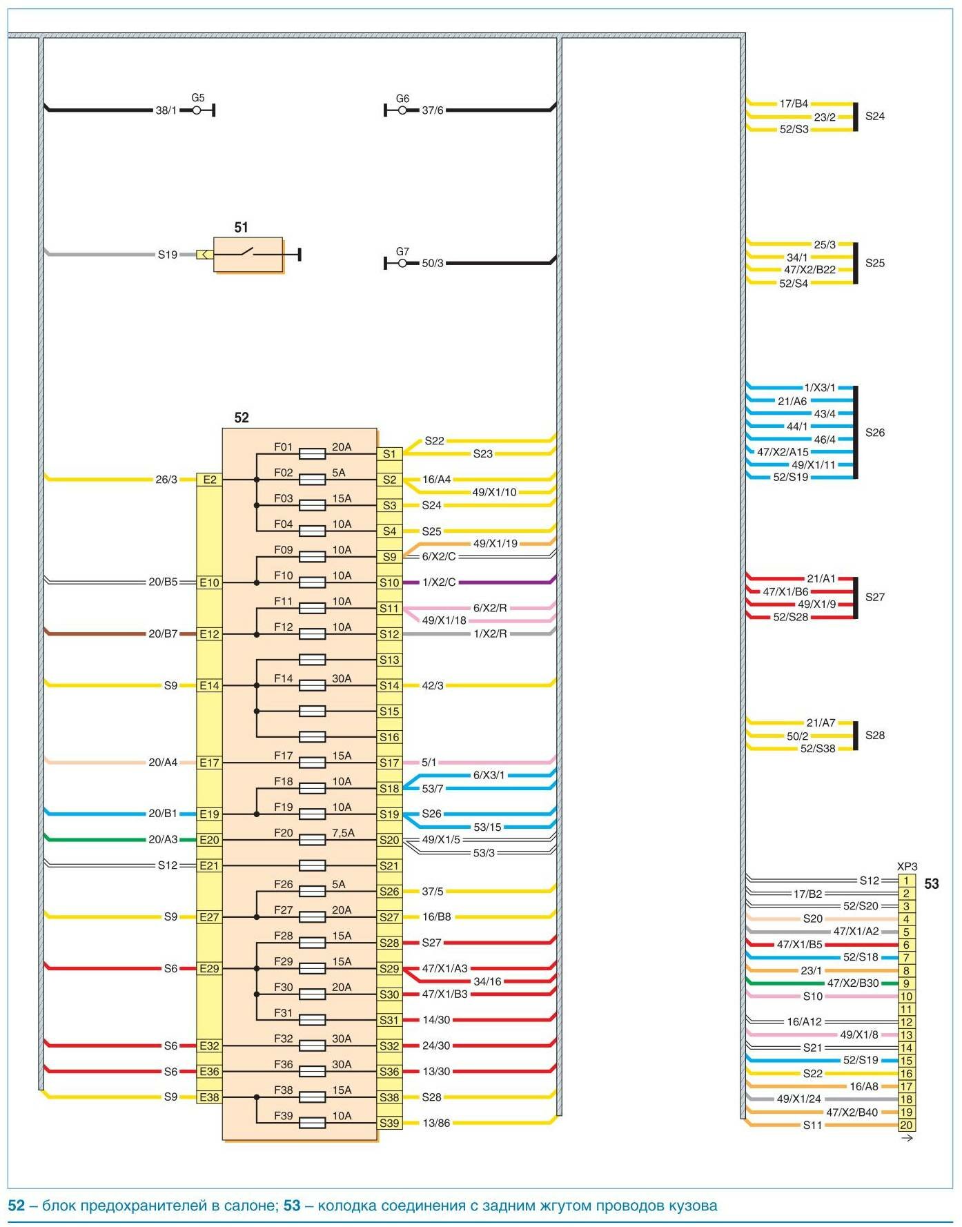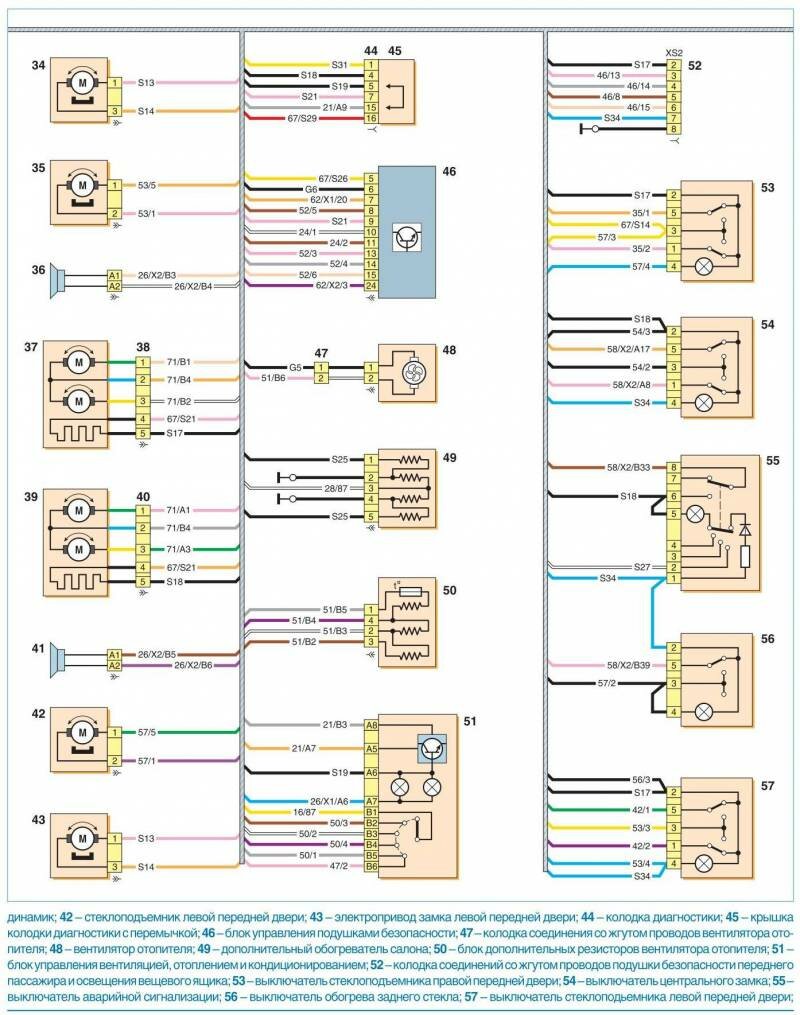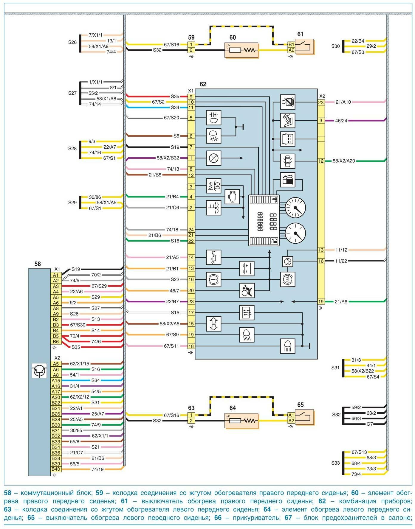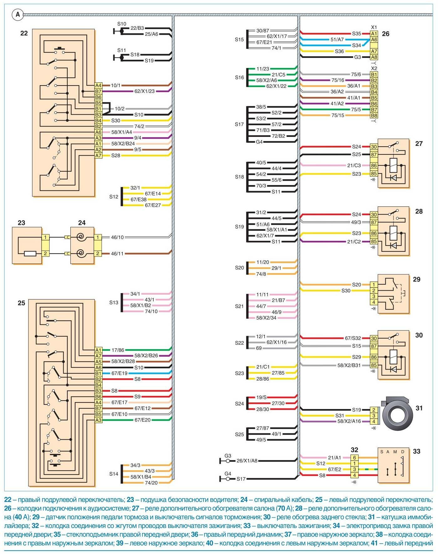 Схема электрическая соединений проводов подушки безопастности переднего пасажира и освещения ящика