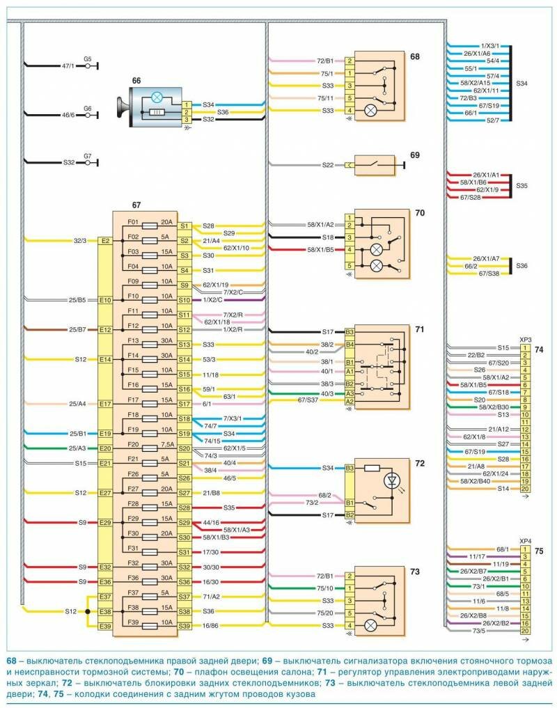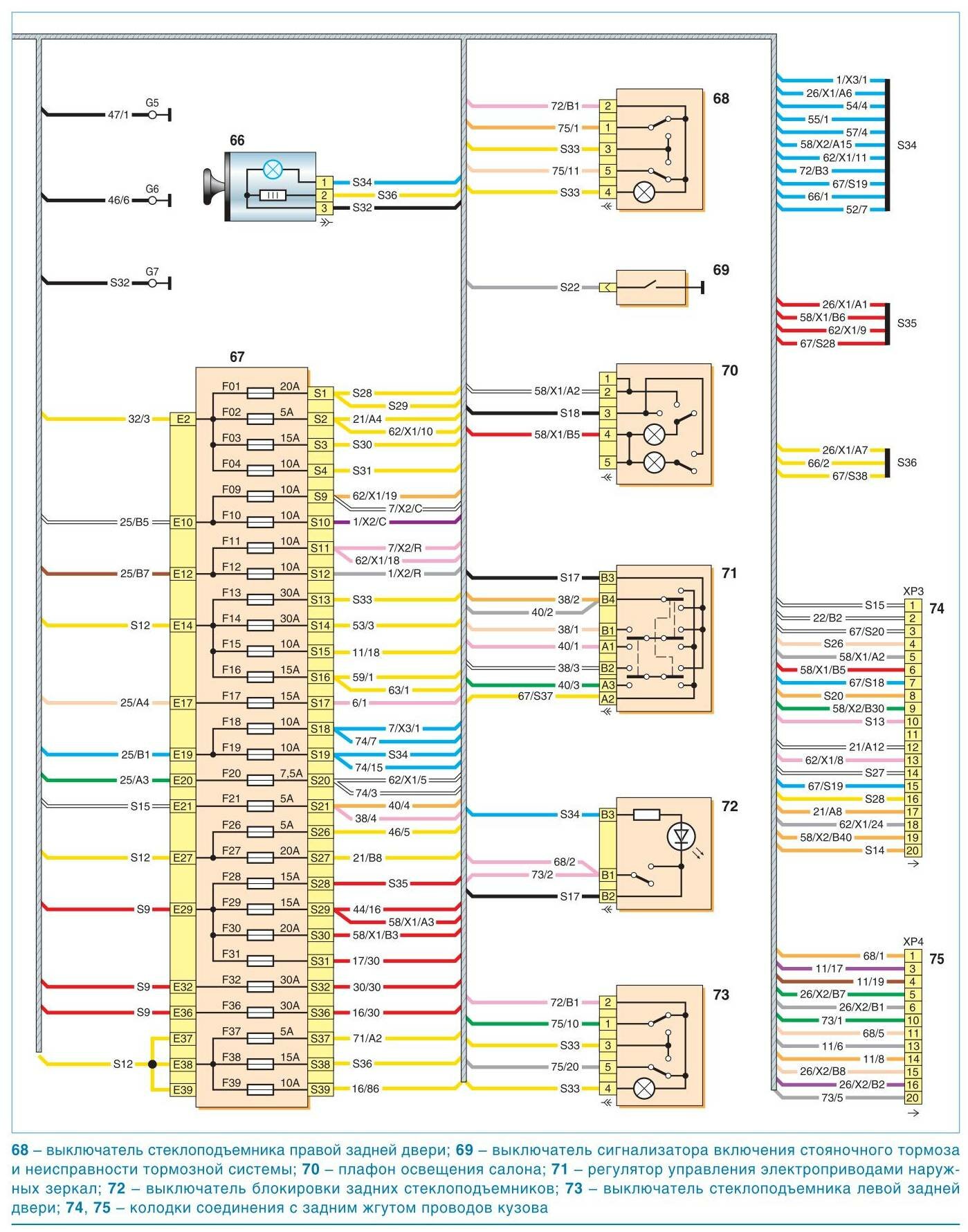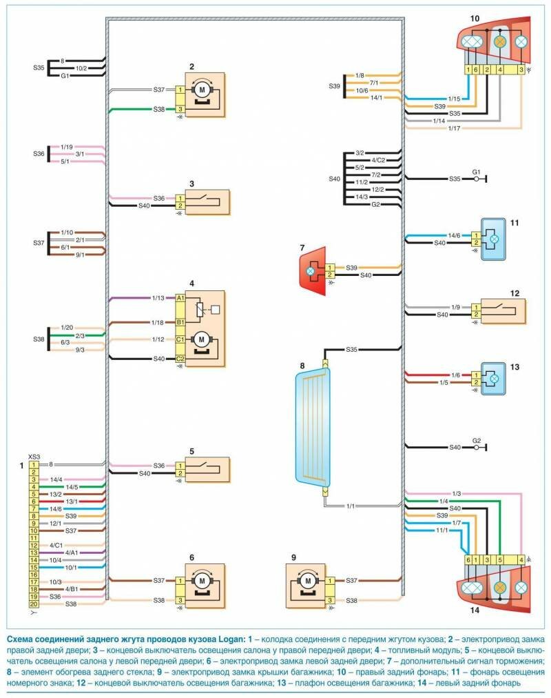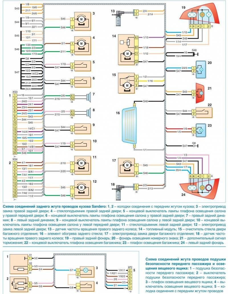 Схема соединений заднего жгута проводов кузова Рено Сандеро