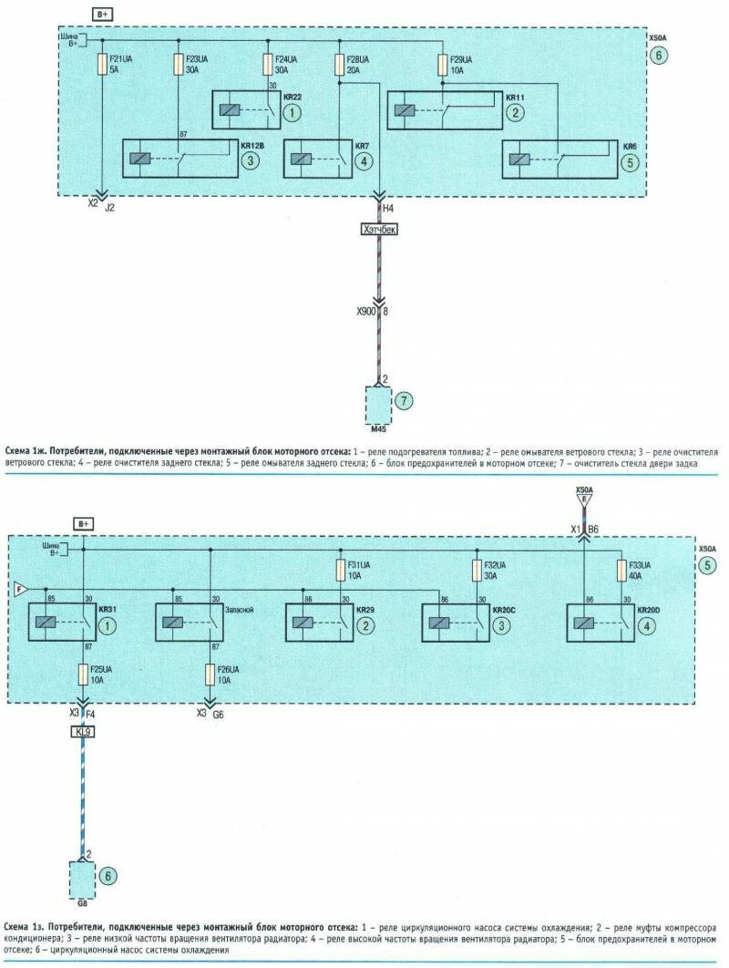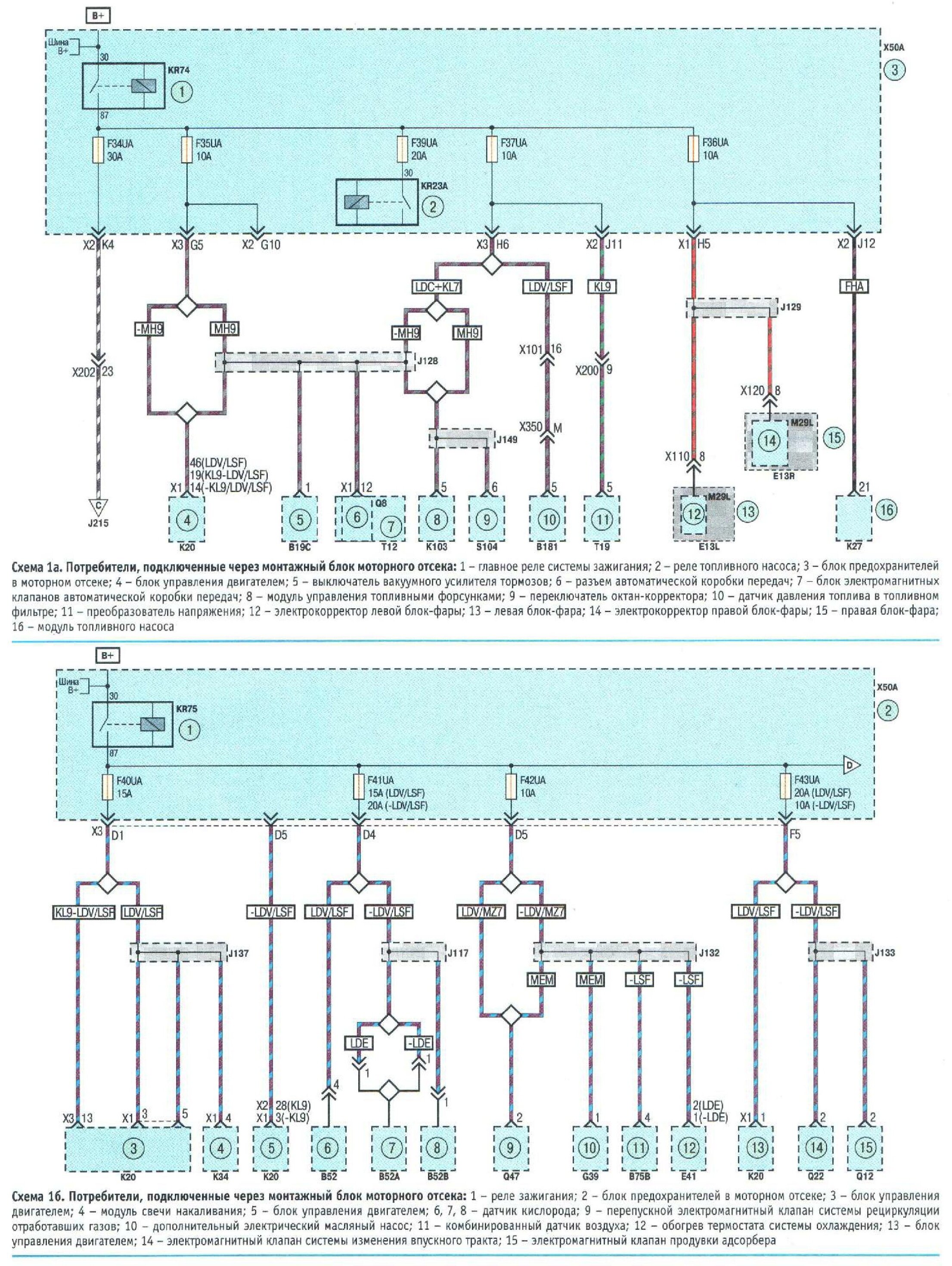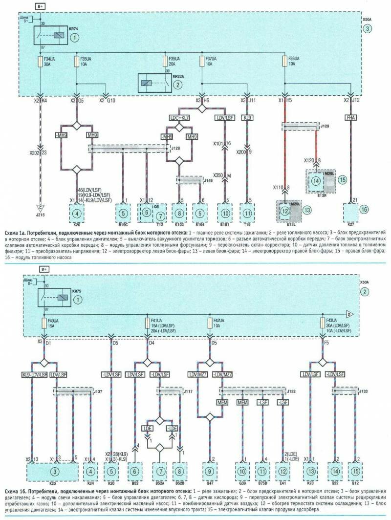 Цветные схемы электрооборудования автомобиля Chevrolet Aveo с 2011 года, модификация T300. Показаны русскоязычные схемы и соединения электрической проводки узлов приборов автомобиля Шевроле Авео. Соединение приборов, соединения звукового сигнала, стеклоочиститель и омыватель ветрового стекла, соединения стеклоподъемников передних дверей, соединения комбинации приборов, антиблокировочная система тормозов, система управления двигателем и другие. Схемы для более старой версии Aveo смотрите здесь.