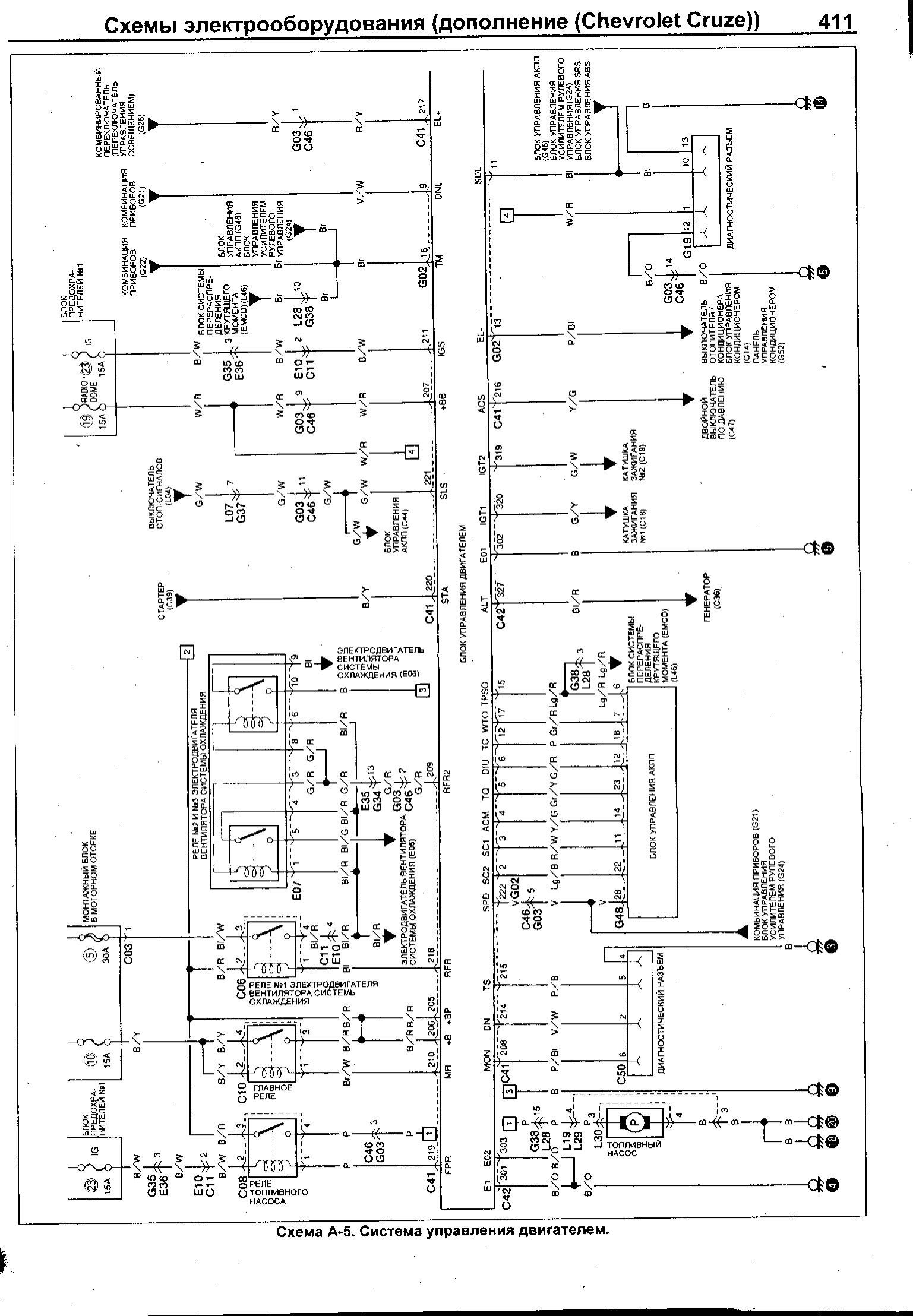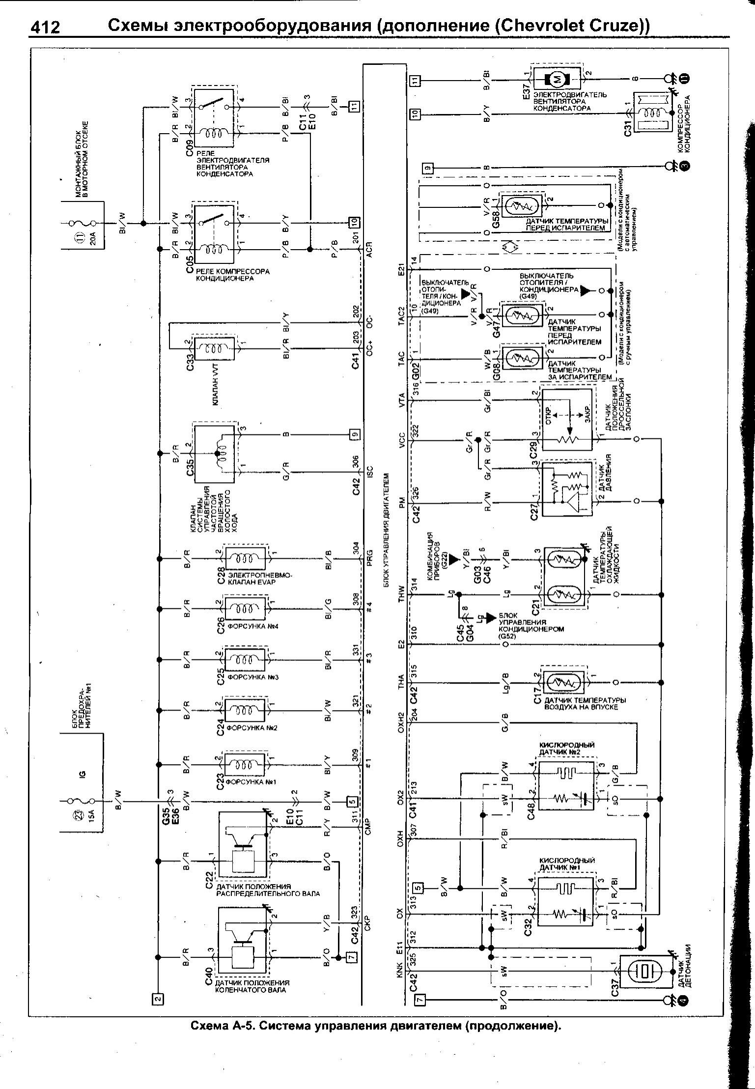 Система управления двигателем Chevrolet Cruze - электросхема