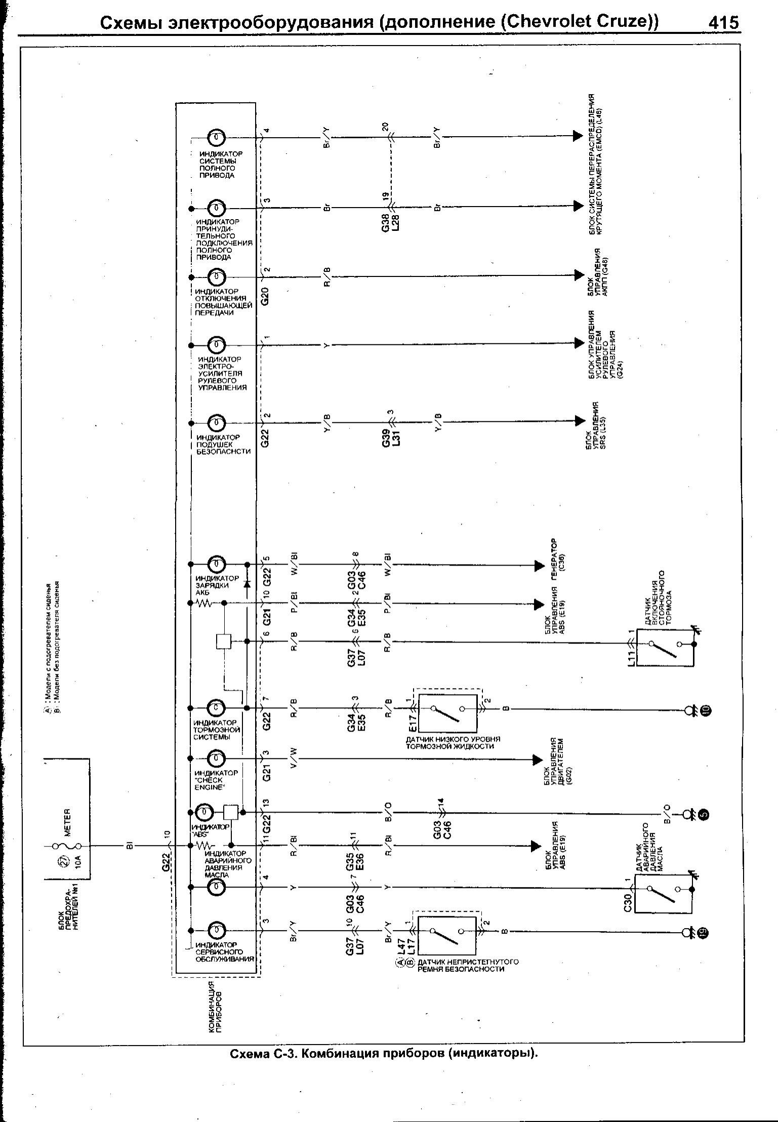Электрическая схема блока комбинации приборов Шевроле Круз