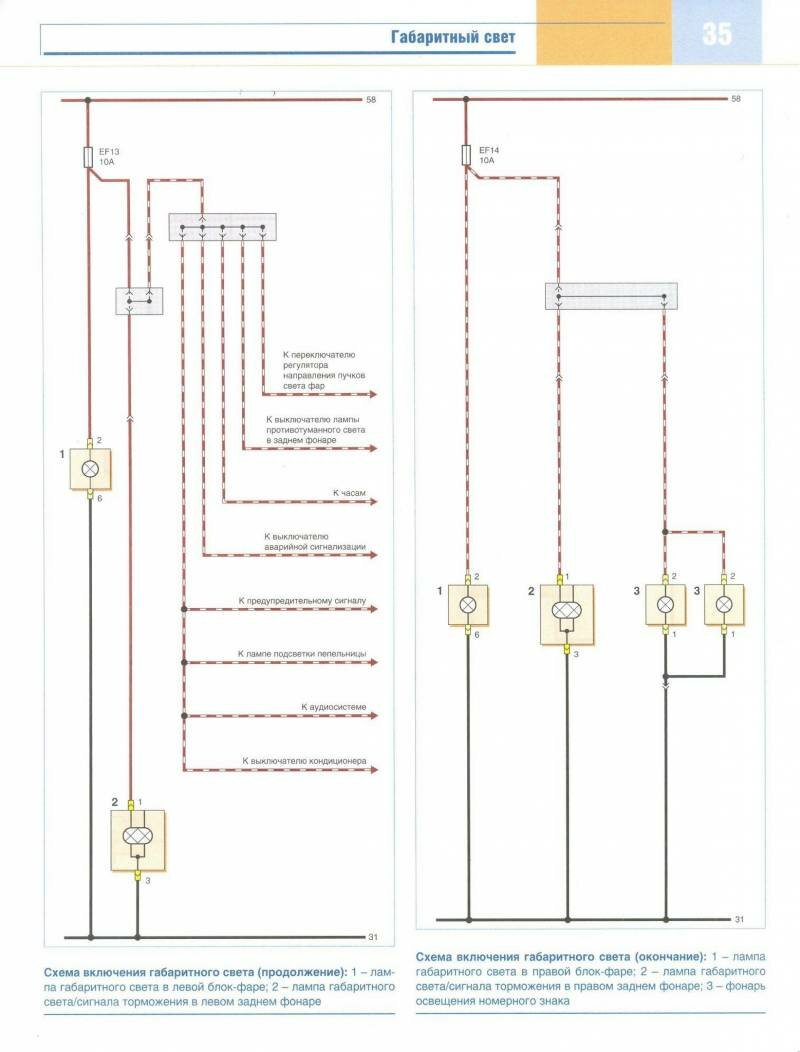 Схема включения габаритного освещения