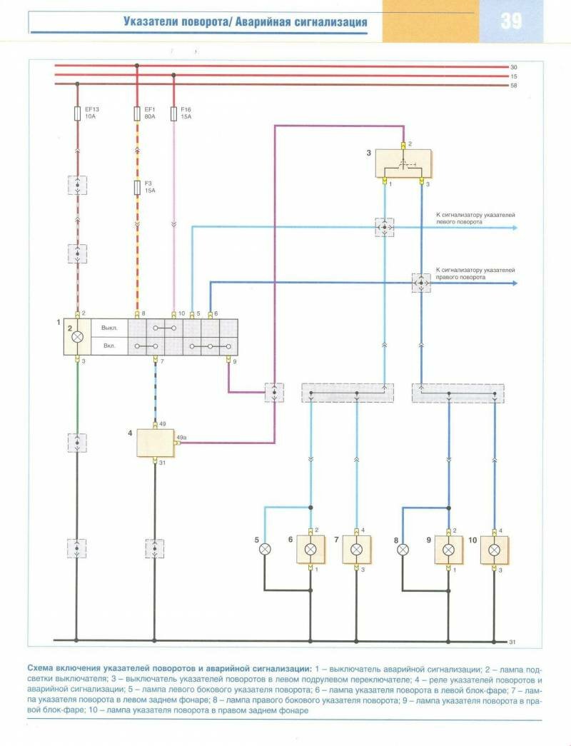 Включение указателей поворота и аварийная сигнализация - схема