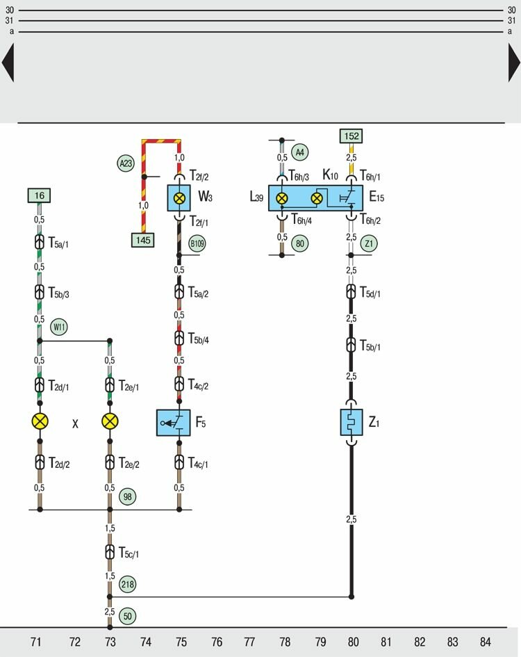 M18 – лампа накаливания левого бокового повторителя указателя поворота;