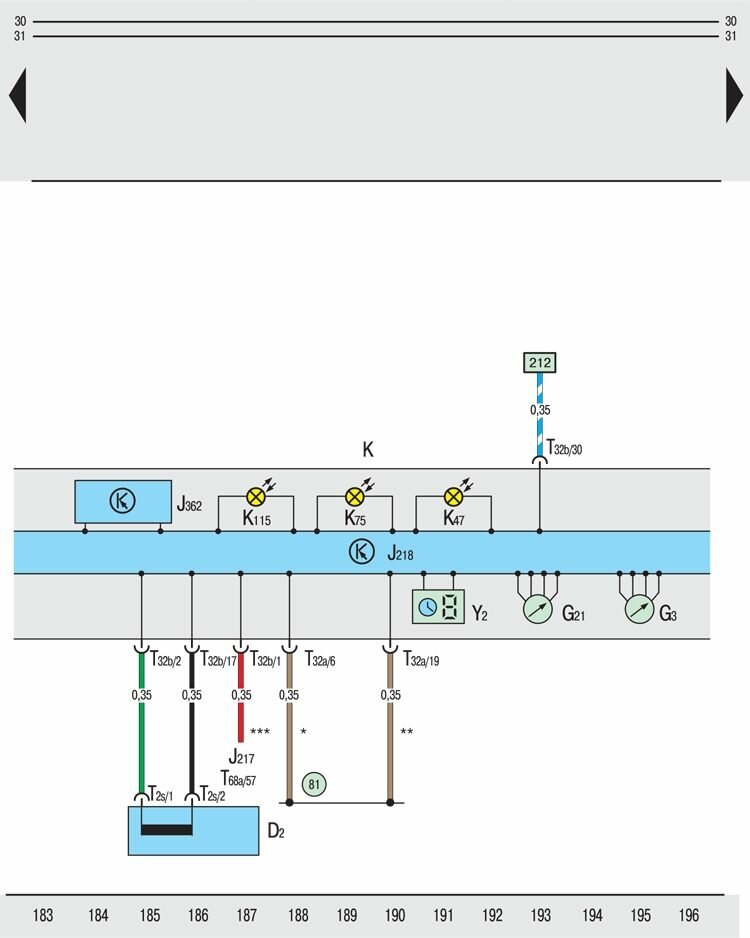 T32a – 32-контактный штекерный разъем, на панели приборов (синий);