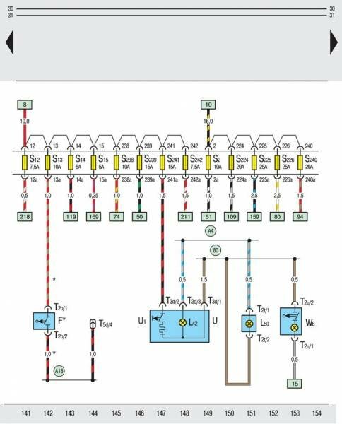 Электросхема коробки предохранителей, сигнал торможения авто