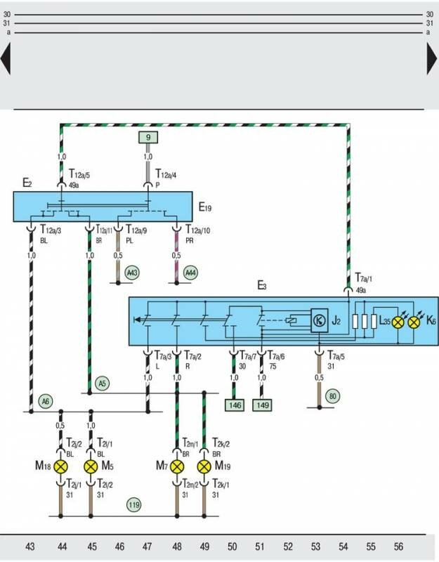Схема Skoda Octavia - указатели поворота, аварийная сигнализация, выключатель стояночных фонарей