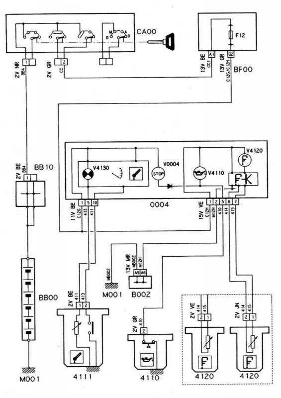 Электросхема системы контроля за температурой, уровнем и давлением двигательного масла