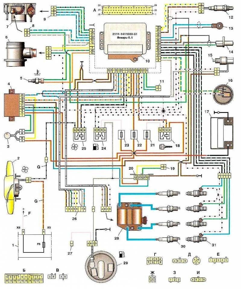 Электросхема проводки ВАЗ 2111 инжектор
